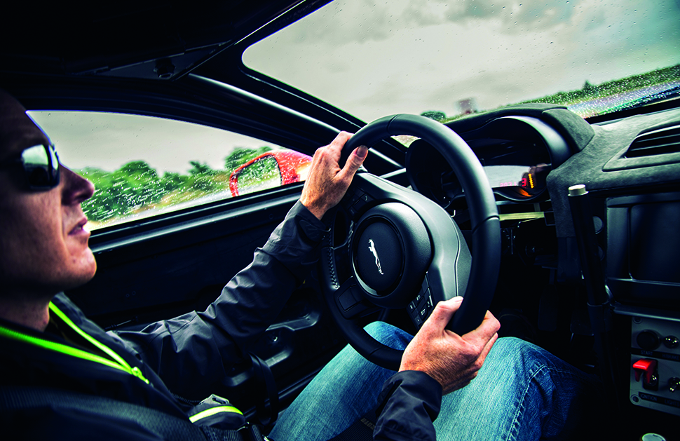不過Ivanov今天不在場,所以我有機會一試它的身手。我們現正身處Fen End,Jaguar試車中心的所在地。這片場地的風光相當不堪入目,Andy Green在Goodwood Festival of Speed期間一頭栽進禾桿堆的Bloodhound XJ,此刻就停在圍欄外供人欣賞。圍欄內的保安人員則好像致力於保護當地蠑螈多於顧及測試車,除了提出聲浪和車速可能構成問題,負責監護這輛C-X75的仁兄更指出我若像對待蠑螈一樣胡亂舞弄這輛Jag,東京首映禮便會缺了一個助興元素。