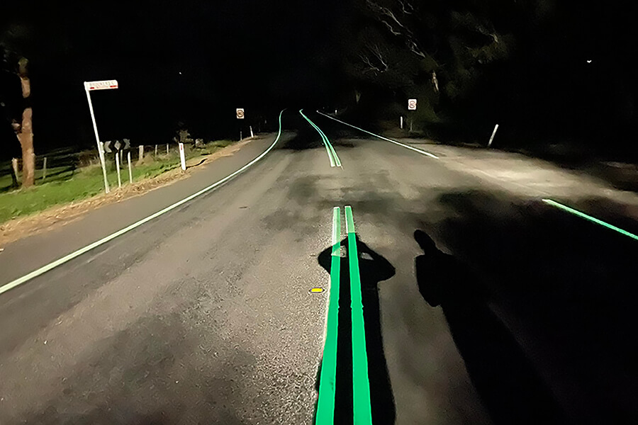 Tarmac Linemarking這家位在維多利亞州的公司在其Facebook 頁面上分享了試辦PL光致發光道路標記的影像。從照片中可以看到由於採用了特殊的標線表面,即使在完全黑暗的情況下,車道邊界線條也清晰可見。Tarmac Linemarking 表示,這項新技術將適用於行人、自行車道、道路、放船斜坡道及更廣泛的應用領域。