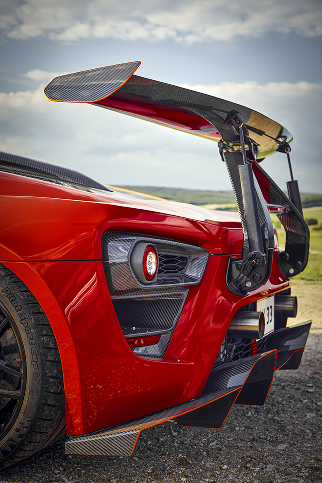 維修道上少數知道實情的人聞言之後頓時捧腹大笑。與此同時,場上某處想必有一位賽道糾察好生困惑,因為Zenvo衝出他駐守的彎角時,那支看似搖搖欲墜的尾翼居然奇蹟一般恢復原狀……。這部全名Zenvo TSR-S的跑車習得一套我輩從未見識過的奇技。喔,我等當然聽聞過主動擾流,也見過跑車搖動襟翼和升起airbrake,卻從沒見過這麼大開大合的套路。這手功夫顯然令Goodwood一眾賽道糾察如墮進五里霧中,Zenvo名之曰Zentripetal尾翼(德文,意指「向心」)。
