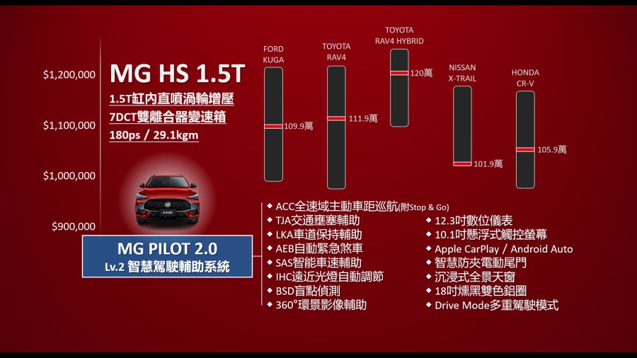 | 重點配備 | l MG PILOT 2.0 Level 2 智慧駕駛輔助系統
