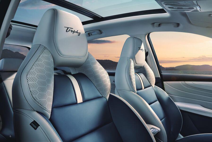 -ACC智慧型全速域主動車距巡航控制系統 (附Stop & Go) -LKA車道保持輔助系統 -SAS智能限速系統 -FCW前方防碰撞預警系統 -AEB自動緊急煞車系統 -LCA車道變換輔助系統 -BSD盲點偵測系統 -RCTA後方盲區偵測系統 -DOW開門盲區警示系統 -IHC遠近光燈自動調節系統 l 360環景影像輔助系統 l 6-SRS安全輔助氣囊 l ESP/TCS/ABS/EBD/HDC/HSA l XDS彎道動態控制系統 l 一體式賽車座椅 l 雙前座電動座椅 l 10.1吋懸浮式觸控螢幕(Apple CarPlay® / Android Auto™ ) l 雙區恆溫空調 l 後座冷氣出風口 l 12.3吋數位儀表 l 256色環艙氣氛燈 l Keyless Entry & Push Start l 賽道之眼LED大燈 l 立體式聚能LED尾燈 l 智慧防夾電動尾門 l 手機無線充電 l 沉浸式全景天窗 l Drive Mode多重駕駛模式 l Trophy套件組 l 18吋燻黑雙色鋁圈