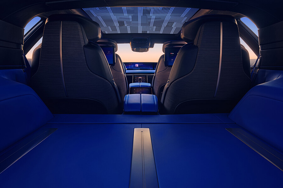 建構在Ultium平台之上的Celestiq以摻有碳纖維等輕量化複合材質及3D列印部件所構成,中央的”假”格柵採封閉設計,兩旁有著130萬畫素的數位頭燈。由擋風玻璃一路延伸到後方斜背的玻璃車頂具備智慧玻璃車頂功能,車內四個區域皆可獨立調整進入車室內的光量,同時可反射紅外線、並加入低輻射率塗層以防止車室升溫過快。