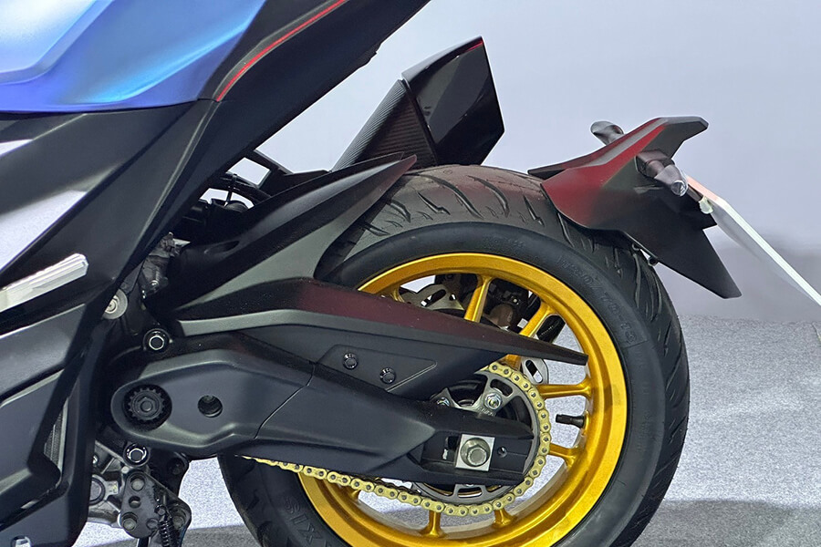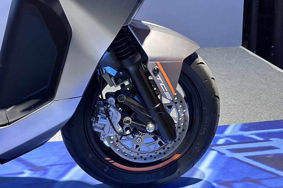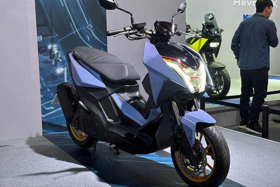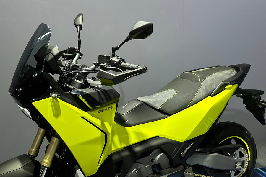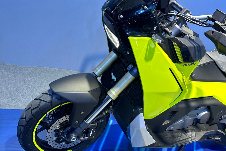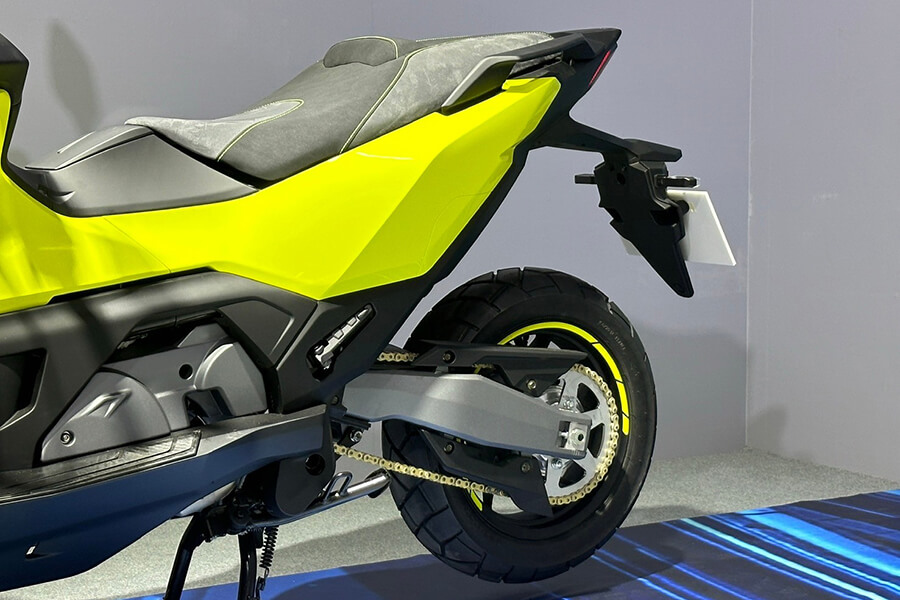 接下來這輛車相當引起小編的注意。CV-R5,同樣冠上CV跨界之名的一輛大型速克達。引擎將採用全新開發的427cc引擎,在5,000rpm時可產生4.1kgm的強大扭力,並配上雙三角台、倒立式前叉的前端與六連桿後懸吊,外觀上更猶如ADV車款般削瘦高聳、排氣管亦採高位出口設定,加上車輛同樣採用PTM獨立後搖臂,實際騎起來的表現相當令人期待。