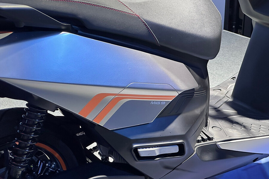 在幾個月前KYMCO才發布了「可充可換、充換合一」的新電能政策,而MiG9正是兼具充換電功能的新款白牌電力旗艦車型。光陽在此尚未秀出關於此車的性能諸元,不過聲稱它具有可安放全罩安全帽的車廂空間、延伸踏板以及低窄坐墊帶來更好的雙腳著地性。