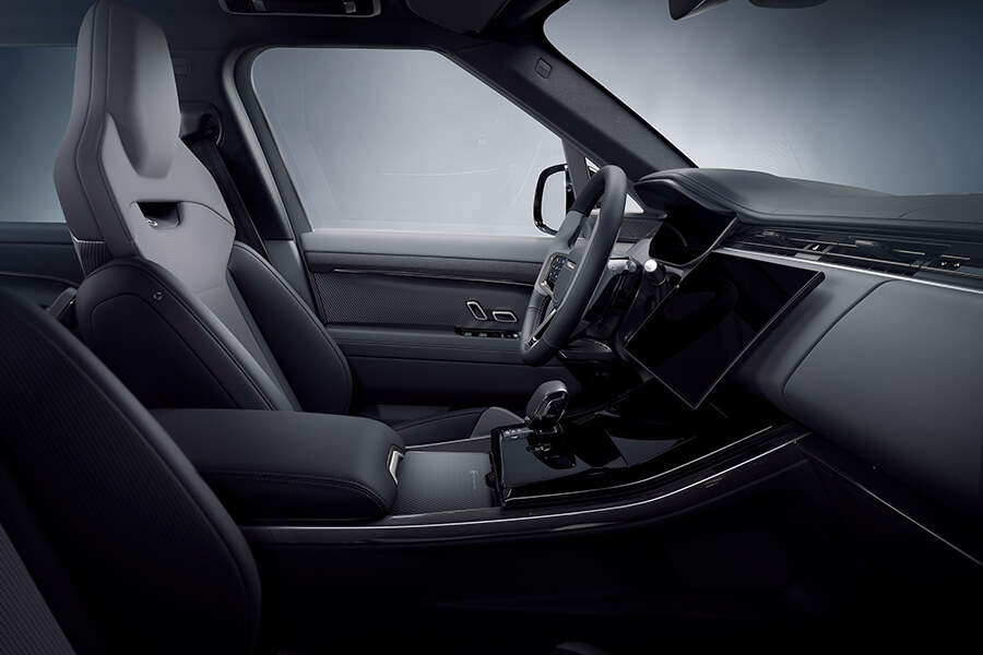 內裝部分,可選擇新的霧面碳纖維飾板或是斜紋碳纖維飾板,與車內的SV高性能雙前座椅附碳纖維椅背相呼應。每輛 SV Edition Two 均配有 Body and Soul Seat沉浸式體感前座椅 (BASS),並可選擇溫莎皮革或 Ultrafabrics TM PU 頂級織品。Range Rover Sport SV 的內裝設計強化車輛與駕駛之間的連結,體現出更加專注的運動特性,同時又不失奢華與精緻。尖端的 Body and Soul Seat 沉浸式體感前座椅列為標準配備,前排頂級的 SV 高性能座椅配有整合式頭枕、碳纖維椅背飾板、發光 SV 徽飾和更為貼合的椅身設計,即使激烈操駕的情況下仍可提供駕駛與前座乘客穩定的乘坐感受。具有16 向電動可調並配備加熱、通風與按摩功能,提供最適切的乘坐品質。後排座椅採用更為動感的設計,兩側腰靠也更為明顯,同時保留了電動角度調整與 60:40 分離收折功能。