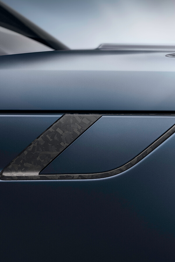 第一款以星系藍車色為主題,車漆採用霧面處理,其顏色本身的靈感來自北大西洋海岸,藍色主體中帶有一絲綠色,並在不同環境下具有顏色變化的效果。與其搭配的全新 SV專屬鍛造碳纖維外觀套件、車身同色碳纖維引擎蓋和 23 吋鍛造輪圈,並配有車身同色的煞車卡鉗。內飾方面,所搭載的 SV 高性能座椅採用淺雲灰與檀木黑色的溫莎皮革鋪成。