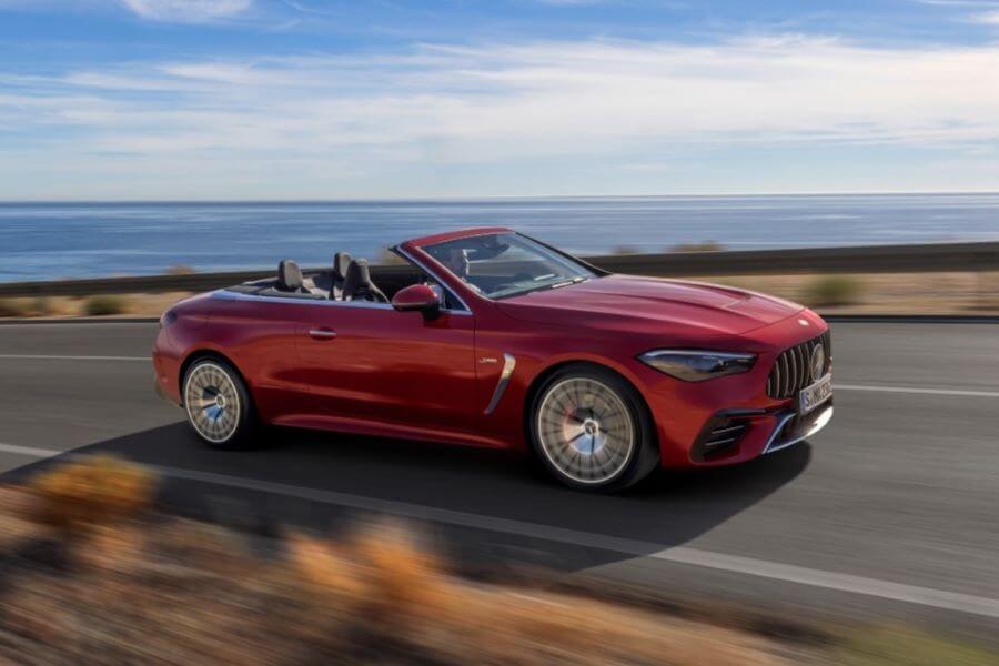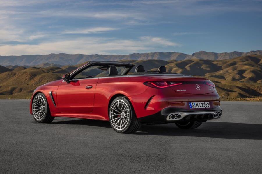 為凸顯AMG有別於一般賓士的身段,AMG CLE 53 4MATIC+ Cabriolet採用專屬的鍍鉻直瀑式水箱護罩,結合A型下氣壩,營造出富有速度感的視覺效果的同時,寬體輪拱向外擴張展現出精實有力的肌理線條與 20 吋鋁圈,凸顯出強悍氣勢。車尾的AMG尾翼與新世代下擾流板含雙排氣鍍鉻尾飾管,完整詮釋AMG的美型與動感。