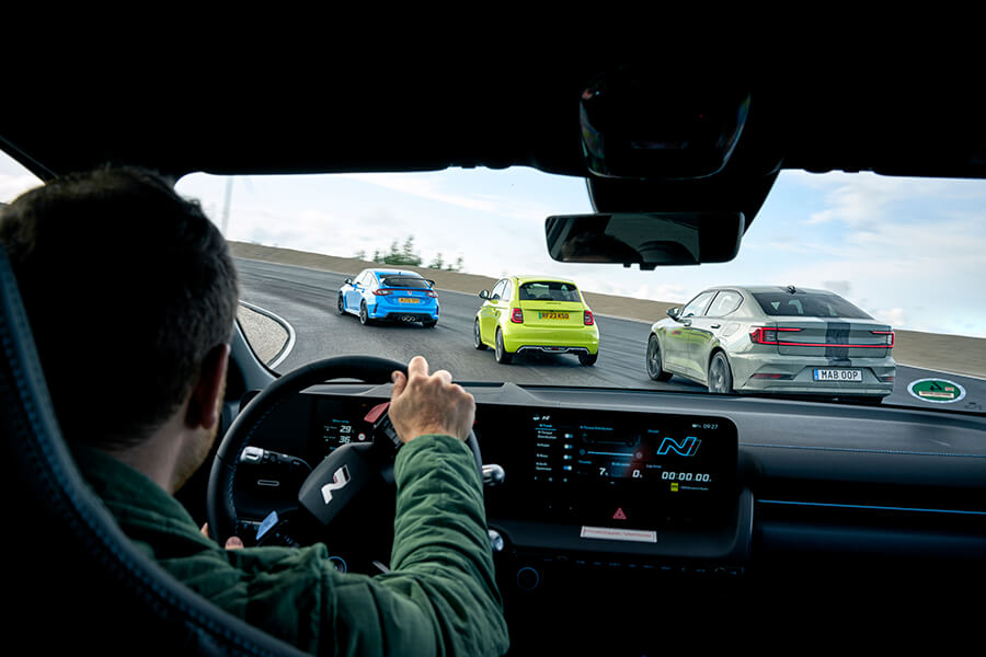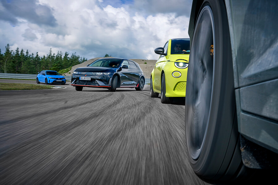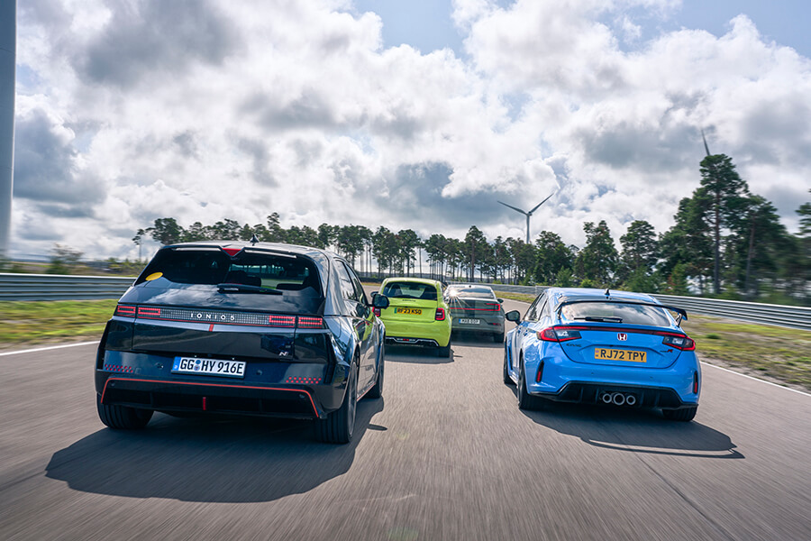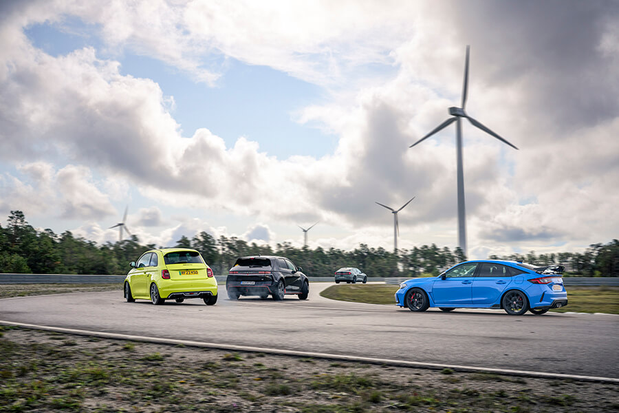 坦白說,我們其實沒有多少選擇,因為……看看這班烏合之眾吧,當中雖有恪守前置引擎前輪驅動手排心法的Civic Type R捍衛掀背跑車傳統(首次踏足神行會擂台的2022年度TG最佳汽車大獎得主),同場較量的對手卻有點不倫不類。這班對手包括了背負毒蝎徽章聲浪響似裝有美式V8的150hp電動飛雅特500、貌似房車踩高蹺的瑞典電動掀背(所用避震器可能是這個回合中最厲害的貨色),以及外形好似掀背,能夠在N Grin Boost模式下爆發出641hp,電腦運算能力超乎火星探測器的南韓中型電動跨界四驅車,生於這個大開眼界的時代真是不枉此生。