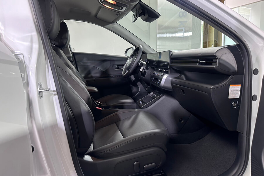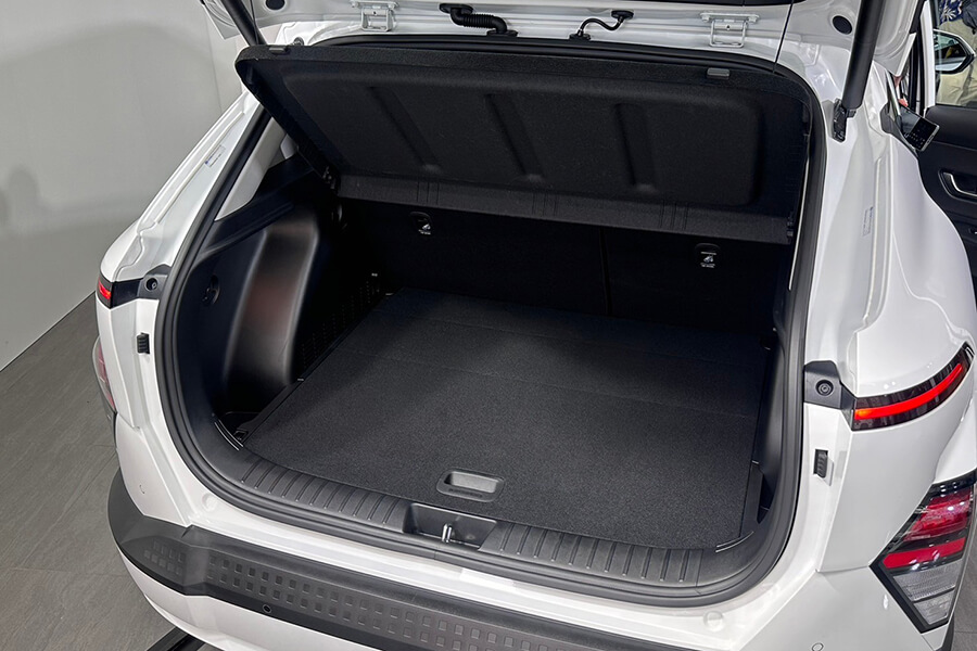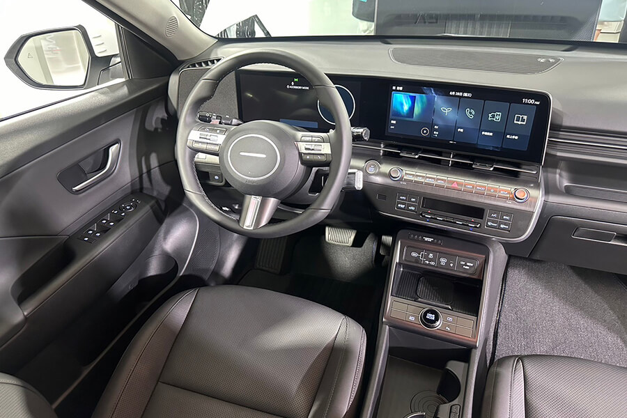 內裝沿襲IONIQ車系清爽開闊的設計,亦將線傳排檔移至方向盤後方,中央採開放式設計,以創造更大、更舒適的車室空間。全新大改款KONA Electric搭載雙12.3吋數位座艙儀錶、全新EV專屬介面(支援繁體中文)、SBW旋鈕式線傳排檔系統、i-PEDAL 單踏板駕駛模式、Qi無線充電座、V2L 車內及車外供電系統,提供最新世代的智能配備。KONAElectric開發第二排全平坦地板,提升乘客舒適度與載貨空間,中央扶手採開放式居家空間設計,並配備一鍵式旋轉開放置杯架,功能性強化,創造更廣泛的生活形式。在安全方面,全車系標配HYUNDAI SmartSenseLevel 2主動安全輔助系統,包含SCC智慧定速控制系統、LFA車道跟隨輔助系統、LKA車道維持輔助系統、FCA前方主動煞停輔助系統、BVM盲區影像輔助系統、SVM 環景影像輔助系統等近20項先進安全科技,確保道路上最高水平的安全與便利性。