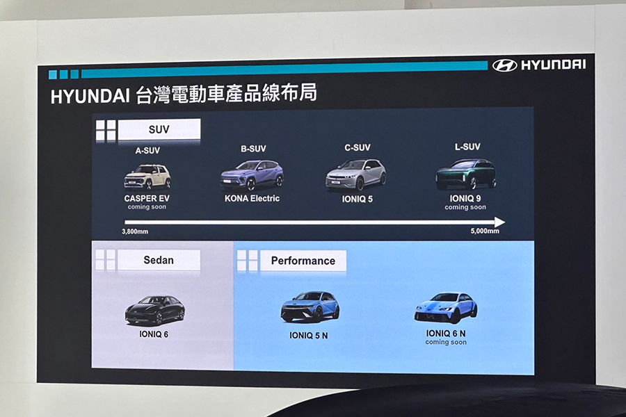 有關Hyundai電動車的消息不僅止於今日上市的KONA Electric,現代汽車也藉此場合宣布,未來還陸續將大型SUV:Ioniq 9以及小型A-SUV:Casper EV導入台灣,性能招牌N也會有Ioniq 6 N前來助勢。敬請期待……