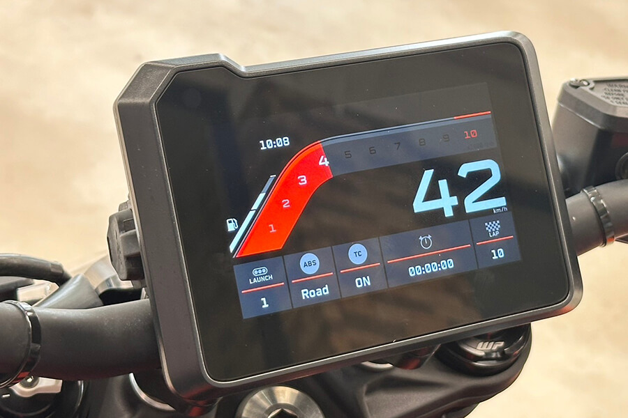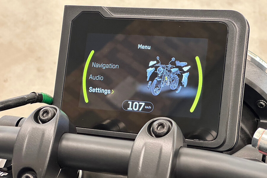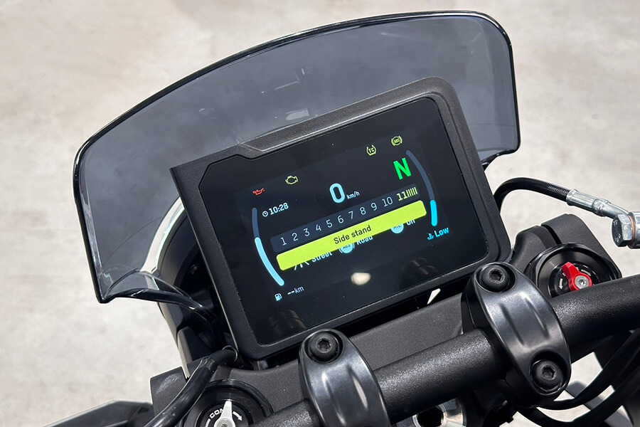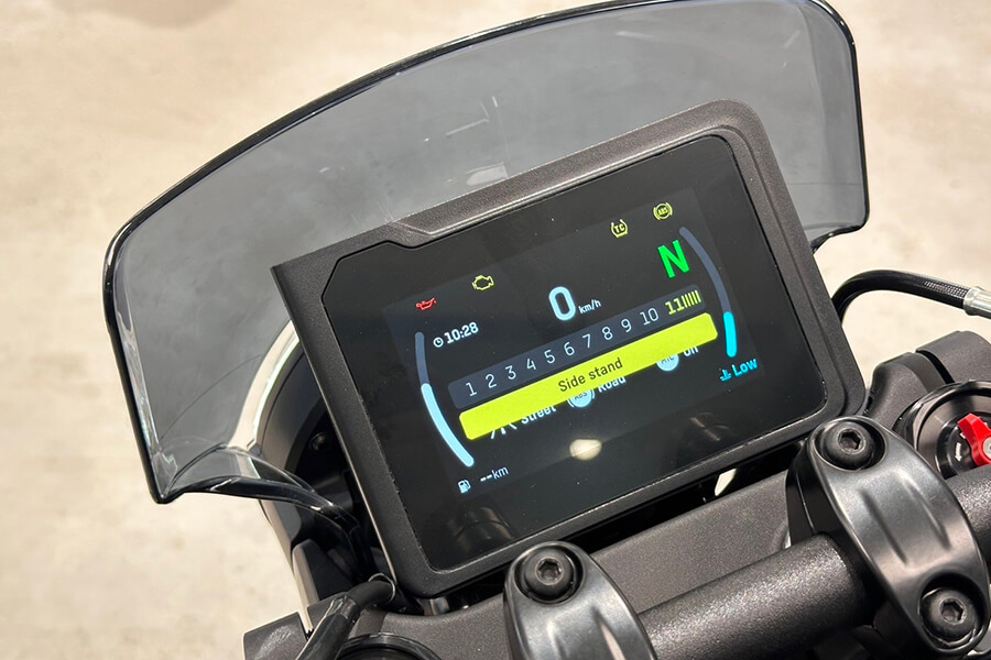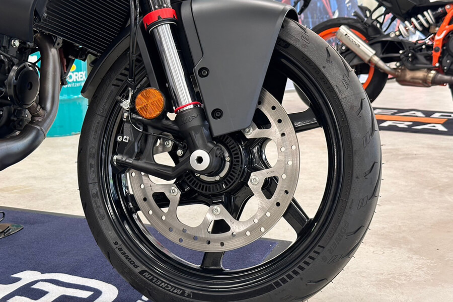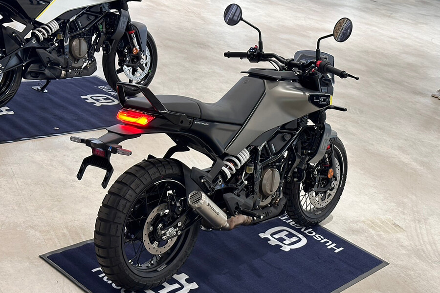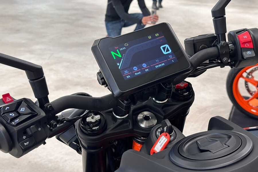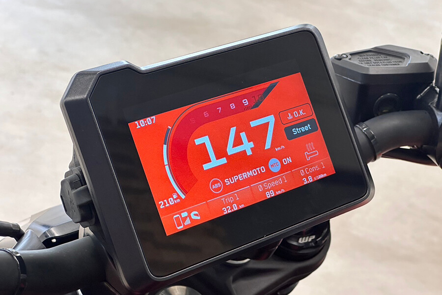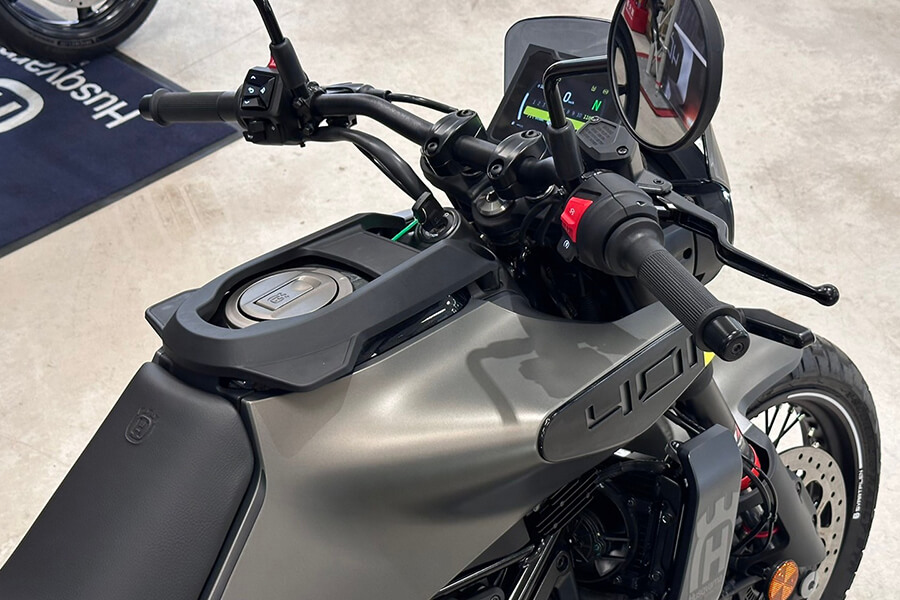 五吋TFT儀表與390 DUKE同樣炫目,視覺與介面則換上與Norden 901類似的簡約風格。裡頭同樣有Ride Husqvarna Motorcycles(Husqvarna的連線軟體)、自動光感應、音樂控制、Turn-by-turn導航、supermoto ABS、彎道ABS、MTC循跡、街道/雨天兩種騎乘模式、方向當自動回復以及進退檔快排系統。