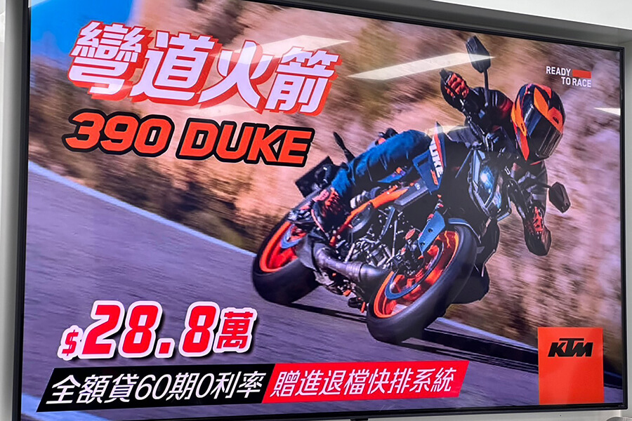 說到快排,其實KTM 390 DUKE也有這項配件,只不過原廠將它列為選配項目。先別急著吐槽,接下來是重點了:在發表的同時,KTM台灣總代理安東貿易也宣布將這價值台幣9000元的快排套件一併送給新科車主。你說羊毛出在羊身上?那也未必,三款車型一率訂出28.8萬的售價、並可全額貸60期0利率,讓這三台動力、配備與日常舒適性皆顧及到的黃牌輕檔車,在不受價錢高低影響的客觀條件下,自由挑選喜歡的車型。話說今天所在的地方似乎有些特別?哦,那又是另一個故事了……