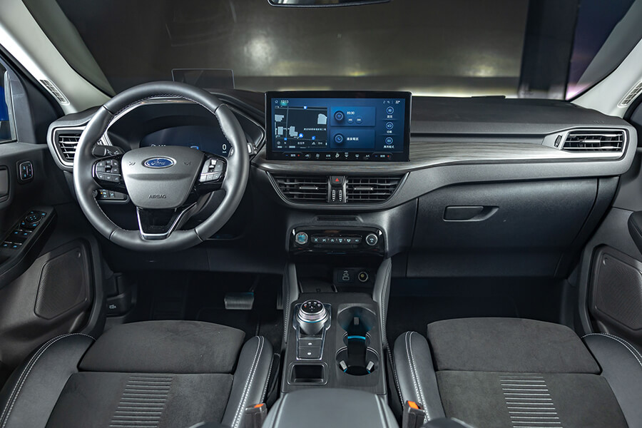 在內裝格局部分,The All-New Ford Kuga全車系標配車室氛圍燈及NVH車艙旗艦寧靜套件,並對應專屬子品牌內裝套件,於車室座艙上多有巧思鋪陳。舉例來說,1.5T Vignale車型採用Metallic Hexagon金屬菱格紋飾板及義大利Mario Levi皮質面料;1.5T Active車型則是以Norwegian Wood木紋內飾及美國性能車御用品牌Sage麂皮內裝做為基底;至於運動車型2.0T AWD ST-Line車型,則是在Carbon Weave碳纖維內飾與Sage麂皮內裝之外,額外透過金屬油門煞車踏板、運動化方向盤以及黑色車頂篷,強化整體性能氣息。同時依循車型不同,Kuga提供 Ford Sensico®雋永皮革永續座椅以及AGR-Premium 人體工學麂皮運動座椅兩種不同設定。當中AGR-Premium人體工學麂皮運動座椅除獲AGR德國脊背健康協會認證外,雙前座更具備同級唯一18向可調(8向電動/4向電動腰靠/6向手動)機制,對應駕駛座3組位置記憶功能(具車側後視鏡、HUD抬頭顯示器連動記憶功能),以及後座可前後滑移15公分、感應式足踢電動尾門、後座椅背64分離傾倒等貼心設計,讓Kuga能在全新車室鋪陳之下,同步兼顧中型休旅必備的空間承載機能。