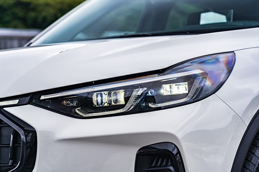 The All-New Ford Kuga於1.5T Active及2.0T AWD ST-Line車型,首度導入Ford最新Pixel AI預判型動態照明系統,除原有的Glare Free智慧型防眩光遠光燈功能外,該頭燈組透過126顆LED晶片及可獨立控制的96組Pixel照明元件,造就清晰照明視野(最遠可偵測800公尺外的路況)。Ford Pixel AI預判型動態照明系統提供先進的預判式動態照明功能(原廠內建導航圖資為基礎),系統可依據原廠導航內建之地圖資訊,同步對應即時方向盤轉向角度及前向攝影機偵測範圍,預先輔助車輛前方行駛軌跡進行光束投射,搭配內建的10大AI照明模式(預判式動態照明、Glare Free智慧型防眩光遠光燈、AHB自動遠光燈、靜態光型照明、速域調整照明模式、惡劣天氣、Sign道路標誌照明 (含標誌防眩光)、轉向輔助照明功能、自動水平調整、高識別駐車燈)輔助駕駛及乘客擁有絕佳的「智慧探索」的夜間照明效果。