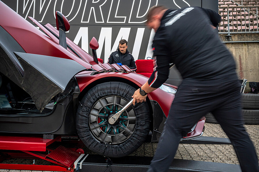 儘管有總和共為1063hp的動力與最優秀的制動、空力與電子系統傍身,但若要在這近21公里高低起伏的蜿蜒賽道裡做出最快單圈,隨時保有電池電量也是個重要課題。因此,在進入其中某些彎道前Maro Engel並非拚到最後一秒才踹下煞車踏板;取而代之地是提早收油並滑行入彎,藉機讓電池蓄電,也就是F1中所謂的”lift and coast”。至於在哪些彎道要實施lift and coast、哪些則需要拚到最後一刻入彎?都經過在Affalterbach的模擬器、以及在紐柏林北環的前期測試中一一驗證。或許各位可以從官方釋出的完整破紀錄車載影片看出點端倪……不過說真的,如今要進入紐北六分半的境界果然不僅要車夠兇、人夠快,事前工於心計的分析與計算已經成為不可或缺的環節了吶……