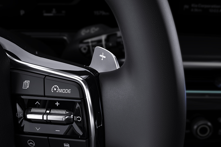 此外在Turbo-Hybrid車款上,Sorento更首次導入E-VMC車輛動態控制系統,透過E-Ride、E-Handling、E-EHA等三大技術來平衡慣性、提高輪胎抓地力,來提升車輛在各種路面情境下的穩定度,增加乘坐舒適性。Turbo-Hybrid車款同時導入智慧動能再生制動系統,源自Kia EV純電車款的智慧動能再生制動系統,可透過擁有複合功能的方向盤換檔撥片,調整油電系統的動能回收力道,同時更具備Auto與三段可調式動能回收等級設定功能,不僅可減少油耗、並延長煞車系統的使用壽命,更可讓駕駛依據個人駕馭風格與需求,調整動能回收力道、帶來更暢快的駕馭享受。