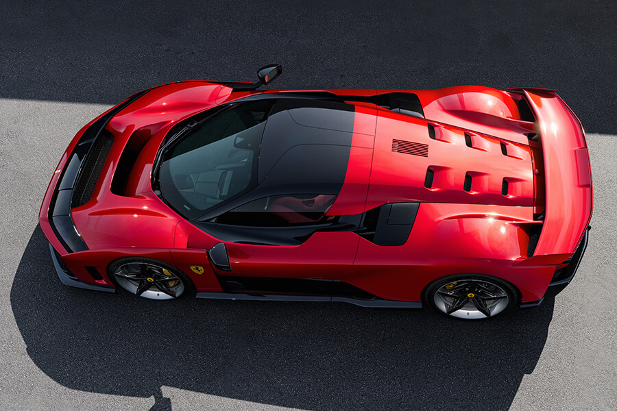 看過開頭文字的你已經知道了,F80捨棄了如同Enzo、LaFerrari上那些轉速狂飆的自然進氣V12引擎,改用V6雙渦輪混合動力作為動力泉源。是的,廣義上你可以說這具120度夾角3.0升V6便是296 GTB上的那顆,不過事實上他更接近於另一輛用上這動力單元的車:499P。比起V12引擎更輕、更緊湊的動力密度,加上一對電子渦輪協助發力,這具內燃機在重量不變的情況下,單憑其自身便能榨出888匹馬力,比起296 GTB還要多出234匹。