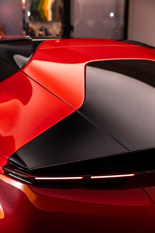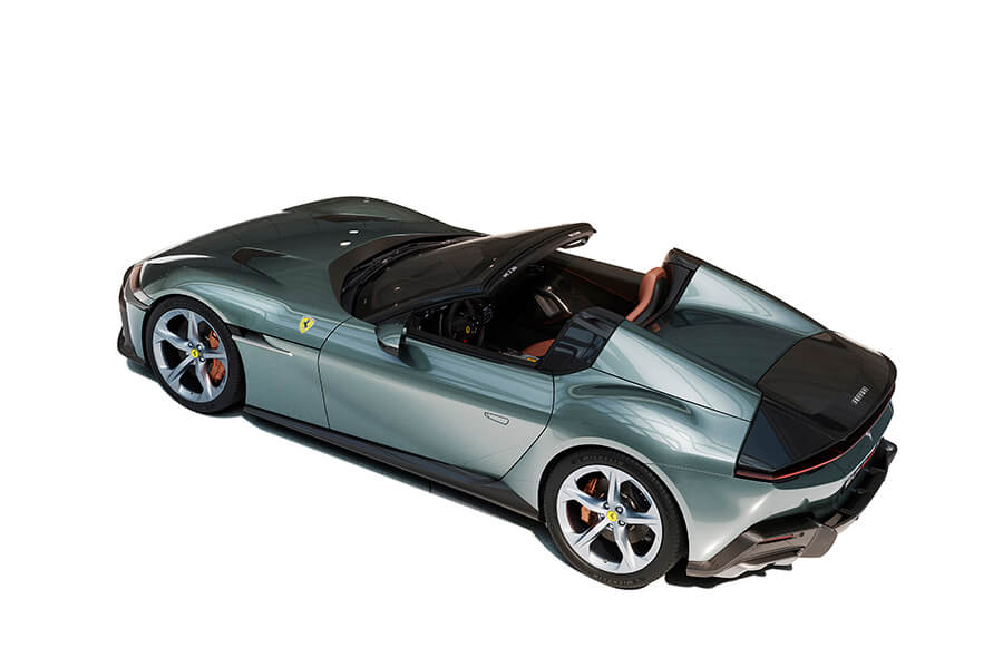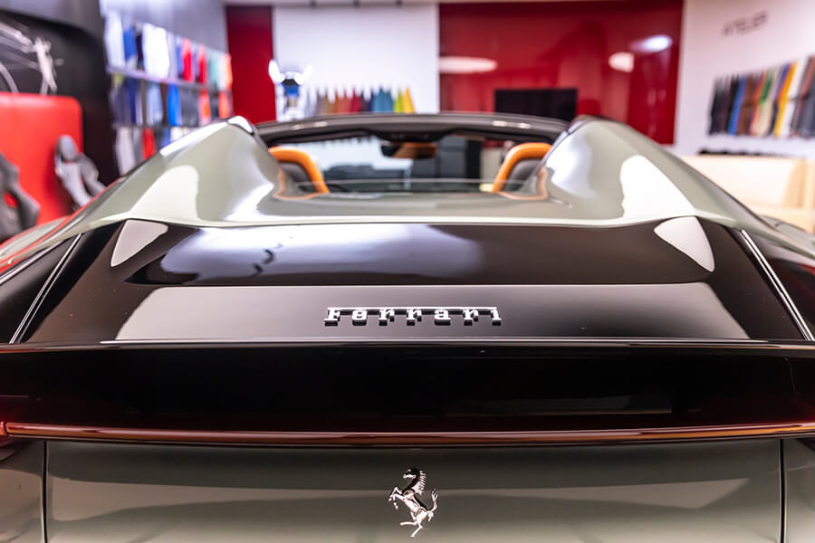 不要問我為何上一代的812敞篷版稱為GTS,這次卻又改為Spider?熟悉法拉利的朋友就知道這是一貫作風,就是要讓你猜不到,但這不是重點,在雙門12Cilindri發表完的中場休息時間結束後,我們被帶到另一個小房間,沒想到12Cilindri Spider就在這裡,據說稍後就會運到美國邁阿密舉行首發記者會。整部車的基礎都跟雙門款相同,最大差別就是B柱後方的車尾背部造型,Spider擁有專屬的結構及車身線條,雙門款特殊的尾窗造型並未沿用,但左右分離的兩片式主動尾翼仍相同採行黑色塗裝,而且不會因客製化塗裝而改回車身同色,頭燈中間那一塊深色飾板也是相同原則,這可是設計總監的堅持吶。至於活動硬頂部分,整體重量只增加60kg,加速成績並沒有因為多出一位女乘客的重量而帶來任何影響,至於活動硬頂的工作條件是車速45km/h以下可以自由開啟或關閉,作動時間14秒。首批車的交付時間比雙門款晚一季,設定在2025年初。