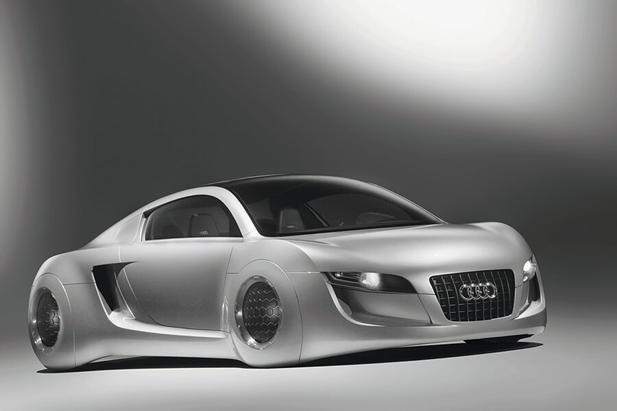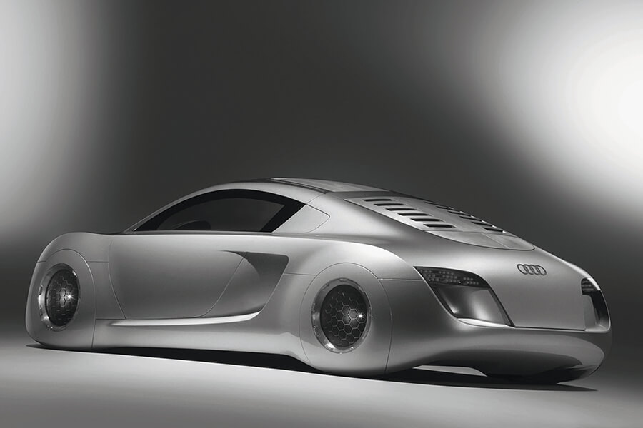 奧迪2004年發表的RSQ,似乎並非那麼遙不可及的前衛概念作。但它發表至今已過了多年,越來越接近當初預想進入量產階段的2035年。這件作品並非在車展或其他庸俗場合正式發表,而是在賣座科幻電影《機械公敵》中與好萊塢巴掌俠Will Smith一起粉墨登場。所以RSQ實際上是為了在銀幕上出現九分鐘而打造的明星座駕。