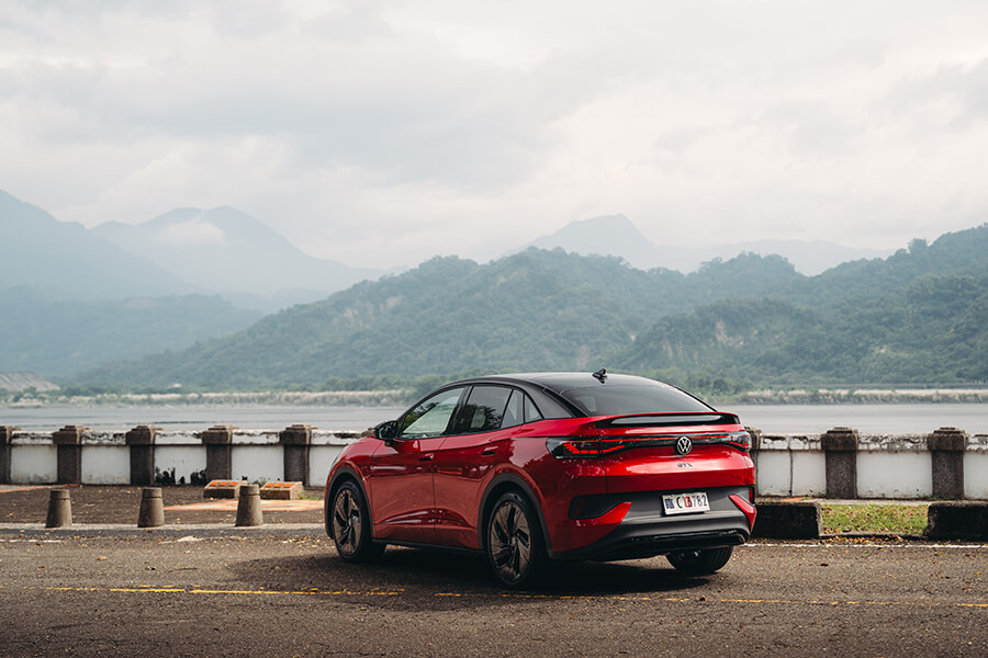 在精準的環景顯示助我在球褲的指示下完成一個個拍照角度後,我們自水里轉進台21線,準備一試這GTX的操控能耐究竟何如?首先,如何讓這體重突破2.2噸的車慢下來,絕對是駕駛率先需克服與習慣的課題。你可能需要習慣此車擁有更長的煞車距離、以及往往需要踩到深處才擁有較充足減速度的特性。如果你已先行體認到這一點,ID.5 GTX還是能在進出彎之間帶來駕駛樂趣。切到運動模式後的動力的反應與回充力道都顯得更為強勢、方向盤的反饋亦更加強而具筋性。由於車重的關係,入彎前所需消化釋放的慣性十分明顯;至於一路上都顯得相當清晰硬朗的避震設定果然十足歐風、側傾現象微乎其微,前後雙馬達造就的4MOTION Active Control在彎中的迴旋身法、與提前下腳出彎時的凌厲程度,都讓人喚起一些過去與Tiguan R的4MOTION四驅系統在彎道遊走的記憶。