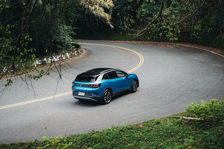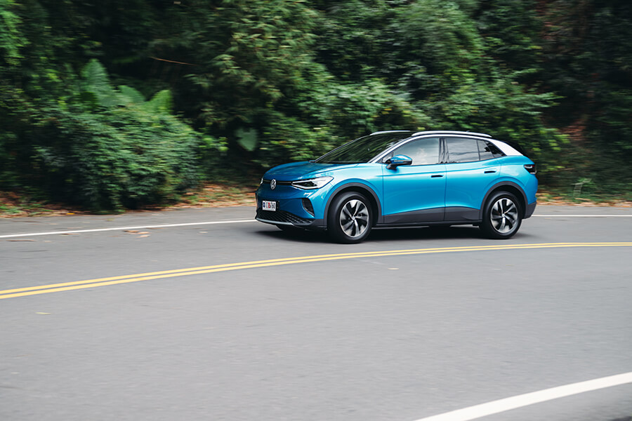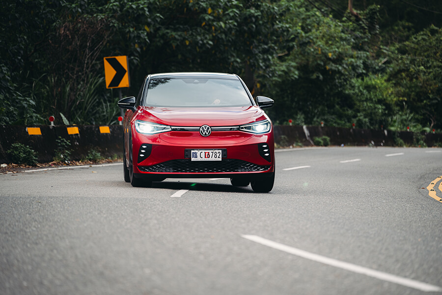因為單馬達設定而略為解放的前軸負重,ID.4 Pro S在動力反應與轉向手感都更加輕柔舒緩,調性變得柔軟許多的四支避震亦樂於向我表達各自的壓縮狀態、同時保持不錯的支撐性抑制側傾程度;搭上全車系皆然那前窄後寬、前低後高的輪胎及懸吊配置,車頭轉進彎道的動態變得更加輕巧聽話,出彎加速之順暢更如一陣清風拂起。在曲折的環潭公路上,ID.4 Pro S的姿態反倒比起ID.5 GTX更加輕盈多嬌、加上這一套表現稱職的駕駛輔助系統,發生在這同時身兼電動車的瞬間高扭力、以及幾乎沒有性格的溫順駕駛感,面對家常駕駛環境簡直恰到好處。