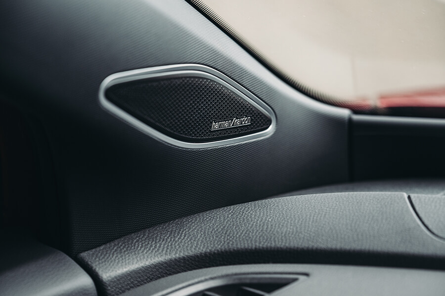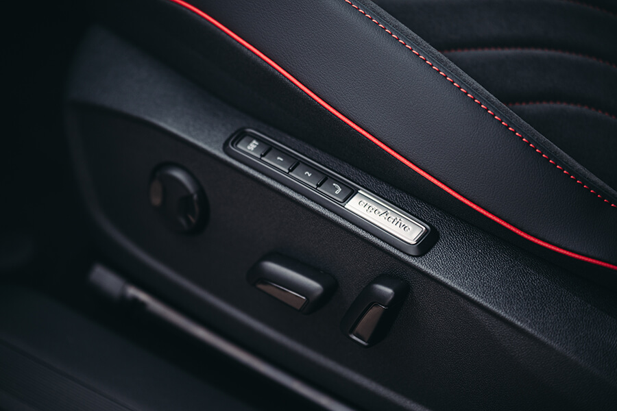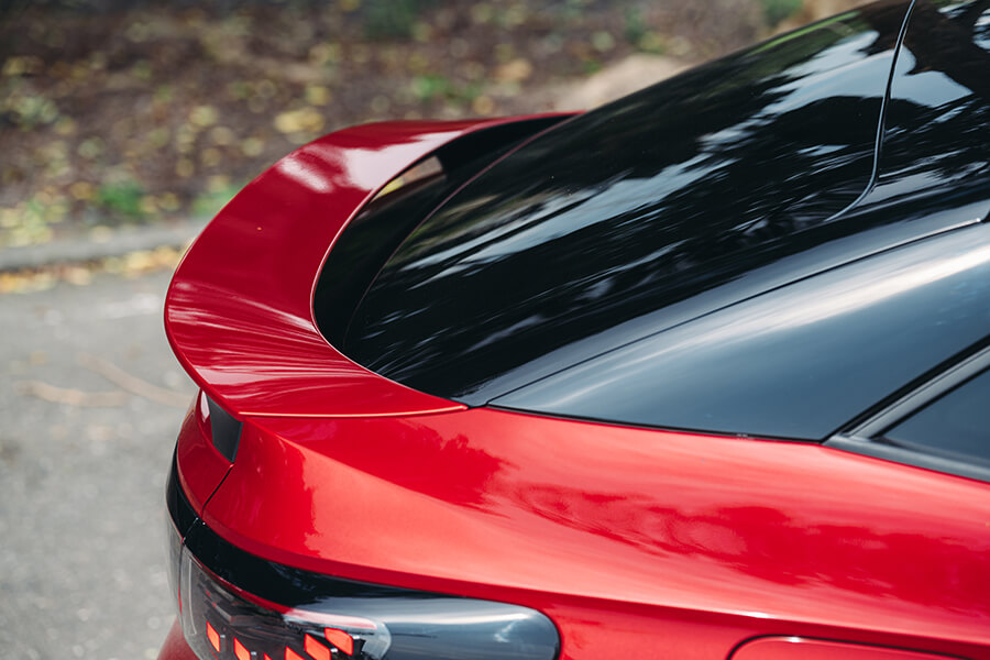 車內的空間一如對電動車的想像般開闊,盡顯纖薄的內飾安排、往前退縮的控台塑型加上懸浮式的中島設計,為前排留下十足充裕的腿腳空間,即便是在黑內裝佐紅色縫線的運動感鋪陳下依舊能老神在在。打開記憶電調座椅的按摩功能、再點點微微向駕駛簇擁的12.9吋螢幕,讓480瓦的Harman/Kardon音響將音符藉由十只揚聲器,流瀉在NVH功力做足的靜謐空間裡,甚至讓我暫時忘卻了這可是兩車系中最性能強勁的版本……對啊,它實際開起來又是如何呢?340匹馬力使起勁來不卑不亢,依照攝影指示一腳踹下最右邊的踏板,動力的萌發未若預期中有如卡車追撞,加速過程倒經過鋪陳、有種循序漸進的攀升感;不過若它是你頭一遭駕駛的電車,肯定還是會被那0-100km/h僅5.4秒的加速表現所震撼……。