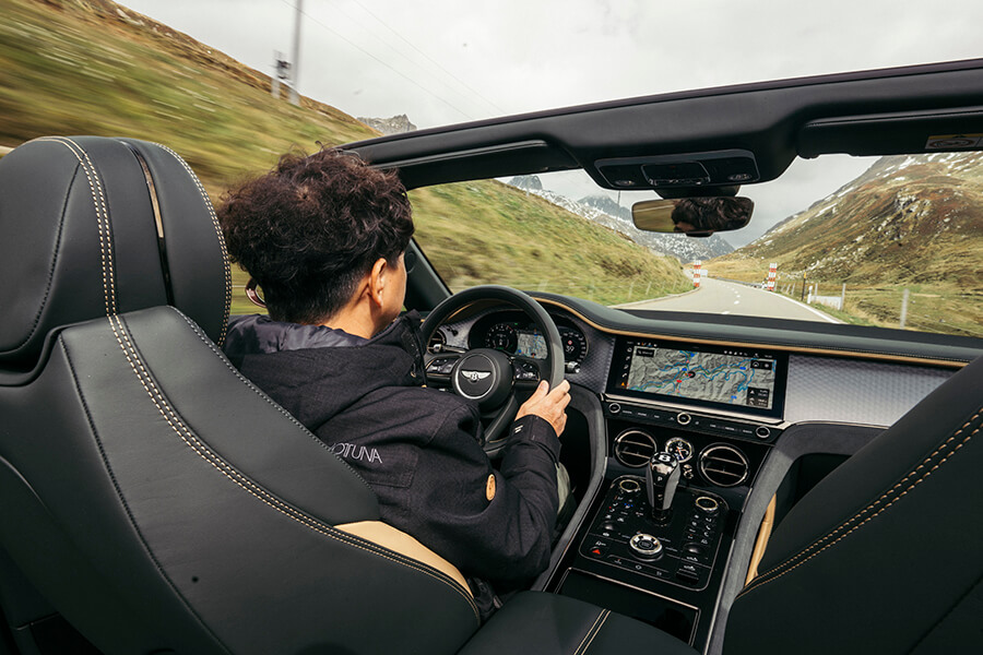 抵達中途休息點Totensee湖畔,真心覺得此處是自駕者與重機騎士的天堂,當然還有一個因素是此刻還未進入雪季(屆時很多路段會因積雪而封閉……)。歷經優美景色與蟠龍彎路的連番感官轟炸後,正想要找地方休憩一下,咖啡廳就出現了,在此處我們換上敞篷Conti GTC Speed。即便兩款車型使用相同動力機構與內裝,差別僅在於活動軟頂的重量,不過也因為敞篷,引領我們進入另一個感官次元。此刻體感溫度僅4~5度,開篷難道不冷嗎?當然冷,但反正車上備有頸部暖氣、方向盤加熱與座椅加熱功能傍身,火力催到底的暖和程度足以形成一個小結界,接下來的溫馨提示就是頭跟手千萬不要伸出車外……。