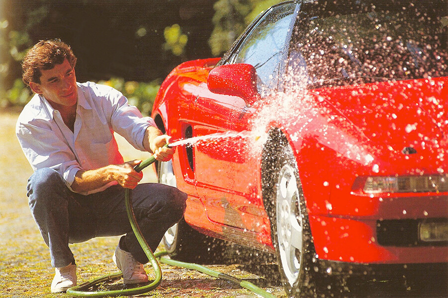 許多一知半解的車迷會懶洋洋地告訴你洗拿曾經協助開發本田NSX。各位下次聽到有人這樣說時,不妨大聲嘲笑對方糾正其謬。本田開發NSX期間,的確為洗拿的F1賽車提供引擎,所以讓洗拿和NSX扯上關係確有宣傳作用,不過冼拿絕非NSX開發初期便納入計劃中的關鍵角色。據外界所知,他曾經兩度測試量產前的原型NSX(分別在紐伯靈和鈴鹿進行)。第一次試車後,他對NSX的評價是「有點脆弱」,促使了本田再下功夫強化車架,他的評語更導致廠方重新修訂懸吊設定。所以NSX的確受過洗拿點撥(洗拿亦因此得到三部NSX),但絕非某些人所相信那樣是洗拿協助開發的作品。