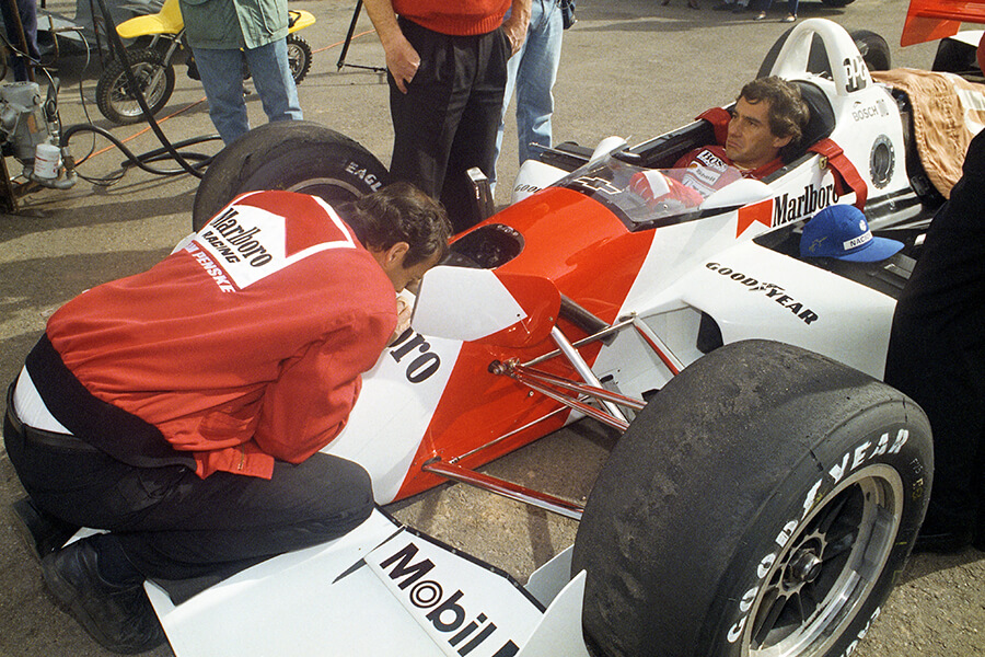 當福特在1993年取代本田供應引擎,洗拿以為那一年的麥拉倫不大可能領導群雄。這位車手在增加籌碼向談判對手施壓力方面可謂專家,所以1992年12月與萬寶路贊助的傳奇車手John Hogan雙雙來到Firebird Raceway測試Penske PC22 IndyCar,背後說不定別有用心。兩屆F1錦標得主兼巴西同鄉艾馬遜費迪柏堤當天也有場(費迪柏堤當時正效力於Penske車隊)。「洗拿有空檔的話,不馬上簽他加盟簡直愚不可及。」Roger Penske坦承道:「我們也許可以想出一些安排。」當天早上,費迪柏堤錄得49.7秒。洗拿在較短的賽道(約1.8公里)跑了十四個圈後要求把賽車調校到沒有那麼死板。就各方面來看,他相當享受在場上飄來飄去的滋味,結果第二回合用同一套輪胎再跑十圈時錄得49.09秒。