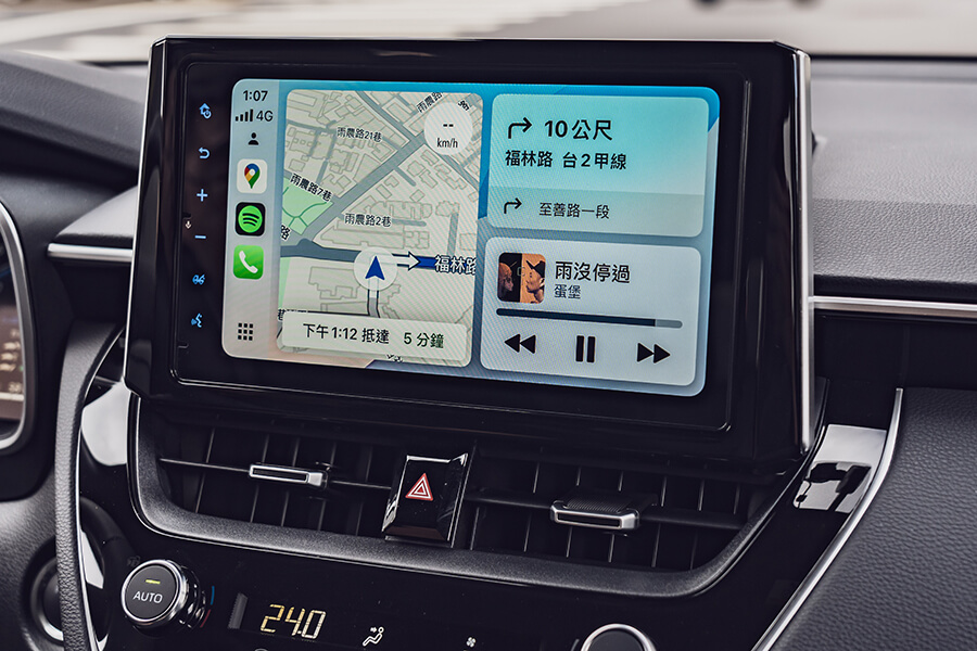 車內的風景沒有大變化,倒也很快就發現新玩具在哪。眼前亮起的12.3吋全彩數位儀表似曾相識,疑似與今年夏天試駕的Camry用上同等貨色。手煞車也終於用上電子按鍵控制、隨附Auto Hold功能,踩下腳感不重的煞車踏板稍待片刻就能啟動,在市區走走停停的路況中能免去反覆做動/解除手煞車的頓挫感,是我喜歡的使用邏輯。配合上TNGA-C底盤舒適中透著適當路感、手感輕盈的方向盤以及被耽誤的冷氣本業(誤)下,坐在些許麂皮材質點綴的八向電調坐椅伺候,穿梭在一團亂的市區交通中顯然有助保持情緒穩定,無怪乎此車改款前已成身後運將的愛用車嘛。