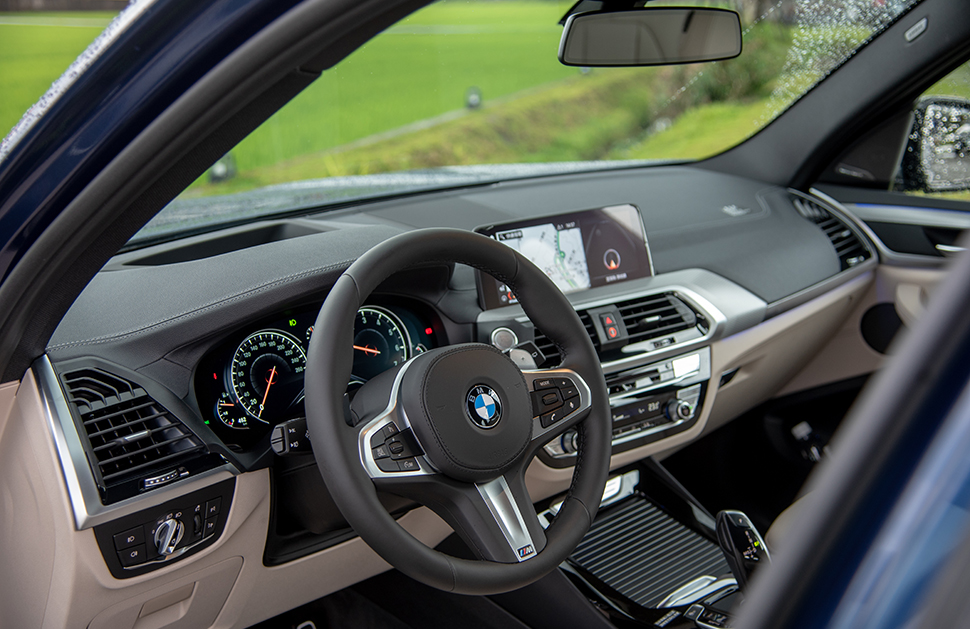 而這X3 M40i可是寶馬首次下放的X3性能版本,盡管各路好手早已推陳出新,X3 M40i一出倒是讓小編耳目一新,穿上M Sport套件的X3 M40i運動性能意味濃厚,而這全副武裝可是一點都不馬虎,光列出有關M Performance的外觀套件就讓小編花費些許時間,M Sport空力套件、M Sport專屬21吋鋁圈、M Sport煞車套件及跑車化電子懸吊,並且用上M Performance專屬配色Cerium Grey點綴,而這些額外包裝即使掛上M Power銘牌,以下犯上相信也並不突兀。 走入艙內更是小編極為推薦M Performance車款的原因,將車格設定在需要點激情的一般買家,將舒適及操駕性能合而為一,而在雙方面達成一種共識,這代表著寶馬賦予它幹勁十足的心臟時,也必須將日常使用納入考量,相較於本家M Power旗下車種硬派作風,M Performance最明顯的就是內裝舖陳精緻度更為可口,而頂規尊榮身份,該有的娛樂設備可一個不少,眼前的數位儀表,中控上的10.25吋觸控娛樂資訊螢幕包含原廠中文化導航,甚至連時下最潮的載具無線充電座也沒缺席,身後的電動調整跑車座椅包覆感十足卻舒適,而X3 M40i內艙質感亦是寶馬中讓我感到心滿意足口常開的少數中的少數。