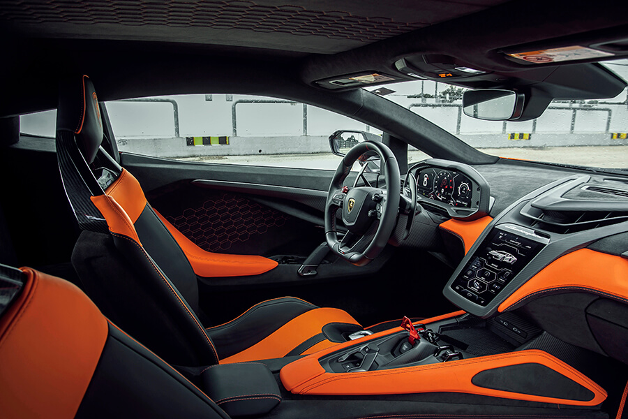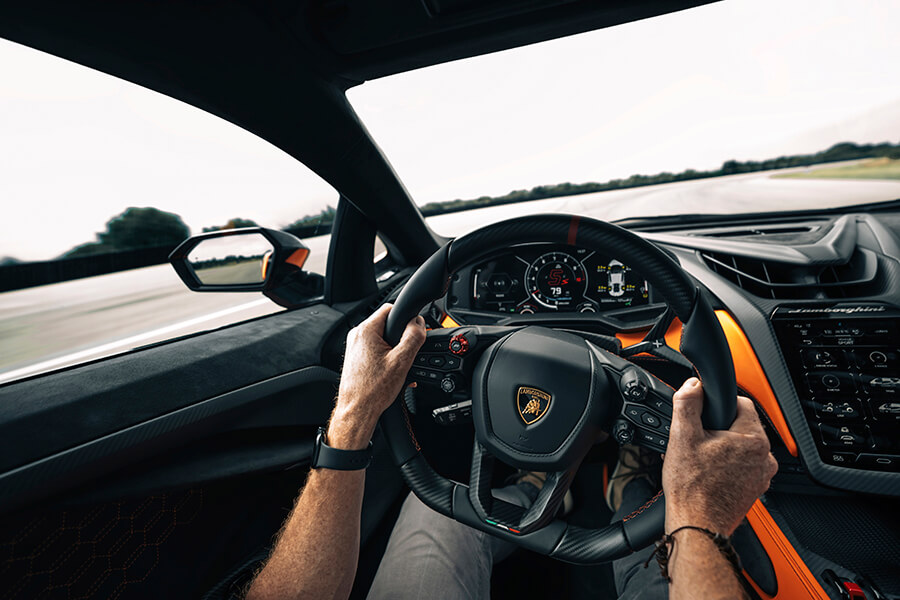 置身其中的感覺仍然大有林寶特色,擋風窗彷彿一直伸延至無盡遠方,車頂兩旁桁樑十分低矮。不過車廂仍然比以前開揚光猛,車手更容易觀察外界(後方視野倒是例外),感覺就像設計師和工程師認真琢磨過車廂的人體工學設計。就連方向盤也十分稱手,乍看按鈕雖多,編排卻不失合理,左右兩邊的上層按鈕用於控制動力系統,左邊按鈕用於選取駕駛模式(City、Strada、Sport和Corsa),右邊用於調校EV設定(偏重充電、混合或高性能),關乎動態性能的設定加起來共有十三種之多。至於下層按鈕,左邊那個用於控制減震桶(包括車頭舉升工作),右邊則用於調校整流裝置。