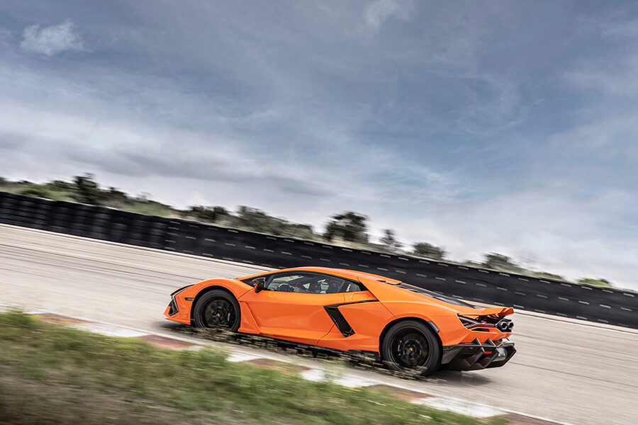 從慢速彎加速出彎時,車手會察覺到電動馬達驅使前輪抵消轉向不足以維繫下盤循跡能力,但干預手法並不霸道,而是在車輪之間微妙調整動力,從而發揮平均而有效的驅動作用,這個正是Revuelto最有趣的新技能。須知Aventador的下盤功夫並不細膩,四驅系統相對粗枝大葉,負責接棒的Revuelto雖然設計上複雜得多,一招一式卻更加流暢老練,過程更加引人入勝,車手得到的回報自然更高。換言之Revuelto的好戲並不限於引擎,至少在瞄準直路從5,000rpm挾著隆然巨響直搗9,500rpm雷霆萬鈞的歌劇高潮之前並非只有引擎出盡風頭。
