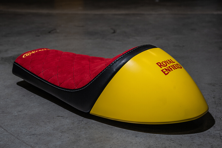 為了加強個人色彩,Tom在皮革表面繡上座鞍整流罩上所見的Royal Enfield Continental商標。如今我們要做的就是磨合一下新座墊……