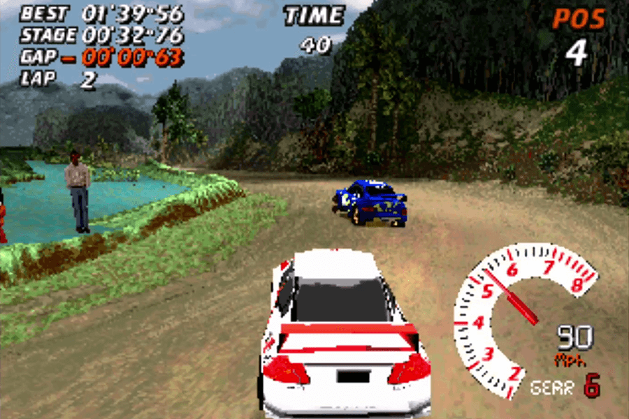 Colin McRae Rally橫空出世前一年,用四驅威力撕破大地留下一班牢牢捧著熱水杯被碎石噴個灰頭土臉的觀眾在背後嘖嘖稱奇的是V-Rally。最初在PlayStation平台推出的V-Rally,是一個似乎從根本上誤解了越野賽概念的精彩遊戲。玩家居然不是與秒針鬥快,而是和另外三部越野賽車直接交鋒。這些對手偶爾會屈居下風,尤其是當你損人利己逼它們衝出賽道直插松樹。