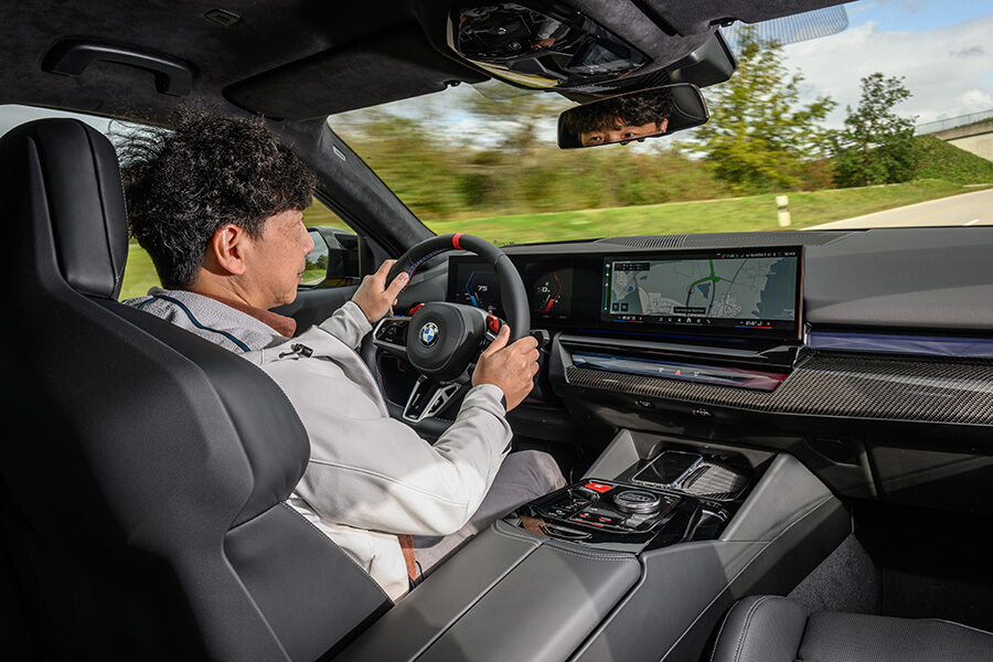 出發沒多久便接上高速公路,我已經等不及想試試廠方特別強調的Boost Control(需選配M Drive Professional套件,包含Track Mode及Laptimer)功能,此玩意兒算不上新鮮,不過對綜效馬力已高達727匹的M5還有必要嗎?加上車內與性能相關的按鈕已經夠多了,從M1/M2,還有M模式裡頭的MDM與Sport,M Hybrid裡頭也有Dynamic與Dynamic Plus,再加上Setup自定義……,這個Boost Control是否會有些多餘?長按退檔撥片超過1秒,儀錶上立即跳出Boost倒數10秒畫面(車速30~150km/h範圍內才能啟用),油門到底旋即喚來澎湃激昂V8聲浪的同時,壓在身上的猛烈推進力道跟超跑幾乎沒兩樣,嘹亮又雄渾的聲浪隨著轉速拉升及檔位切換抑揚頓挫,讓猶如搔到癢處的我忍不住叫出:爽啊!