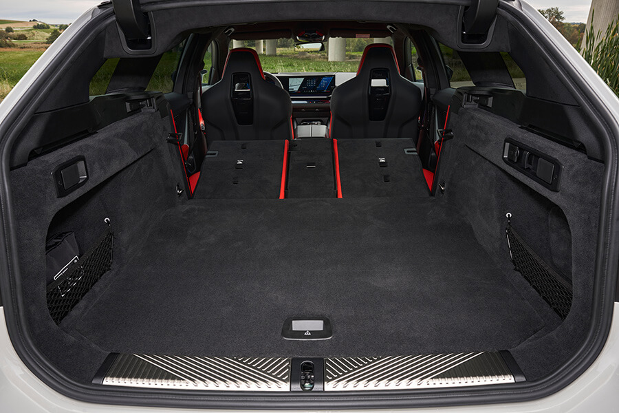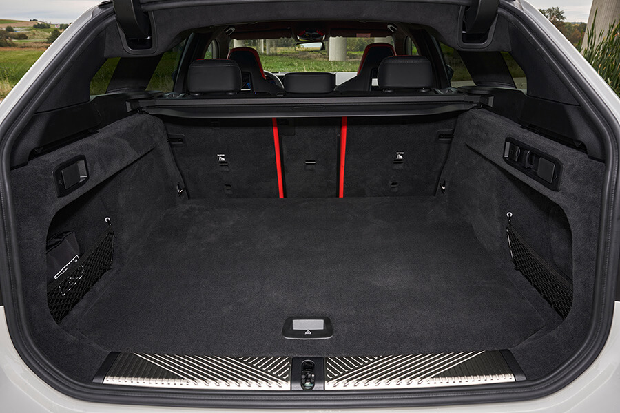 就如同前面提到的,新一代G90與G99 M5 Touring擁有比G60 5系列更寬的車身(前輪寬了75mm、後輪加寬48mm),更寬敞的座艙及擁有500~1630公升容積變化的後行李廂,足以讓M5 Touring有本事輕鬆吞下四名成年人的行李,隨時來一趟說走就走的長途旅行。當然,關於M5 Touring的實際表現,就如大家預期全集中在後面的掀背尾門與多出的重量,若單就規格表的數字比較切入,因為Touring多出40公斤的重量,零百加速慢了0.1秒而為3.6秒,純電模式可行駛距離從69公里縮減為67公里,但老實說整體的駕駛感受並沒有因為多了一截車尾及結構重量而有顯著差異,畢竟這次房車與旅行車的懸吊結構是相同的,不像過去為了讓行李廂地板平整化效果更好,搞剛的為Touring設計專屬的後懸吊……。