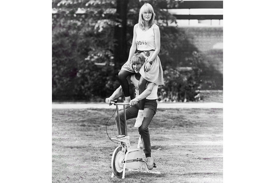 1976年世界冠軍詹姆士杭特在賽道外打發時間的方法,大概比他的駕駛手法更加為人津津樂道。圖中正是他1982年宣傳自己新成立的Bodys健康會所時所用的辦法。