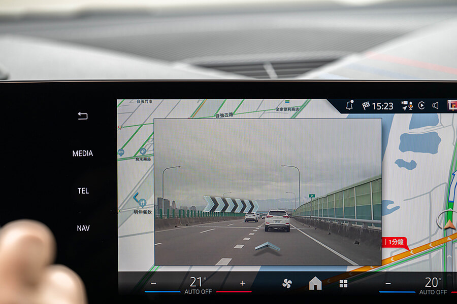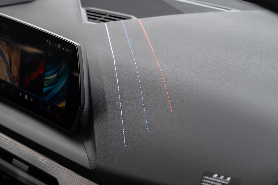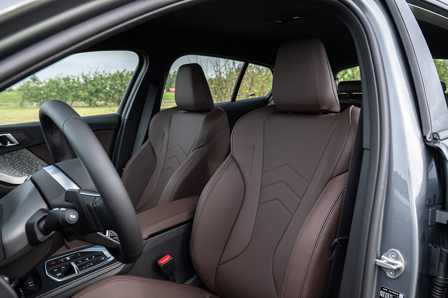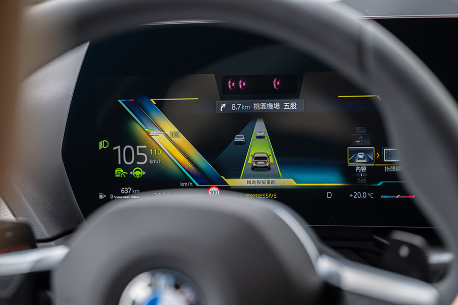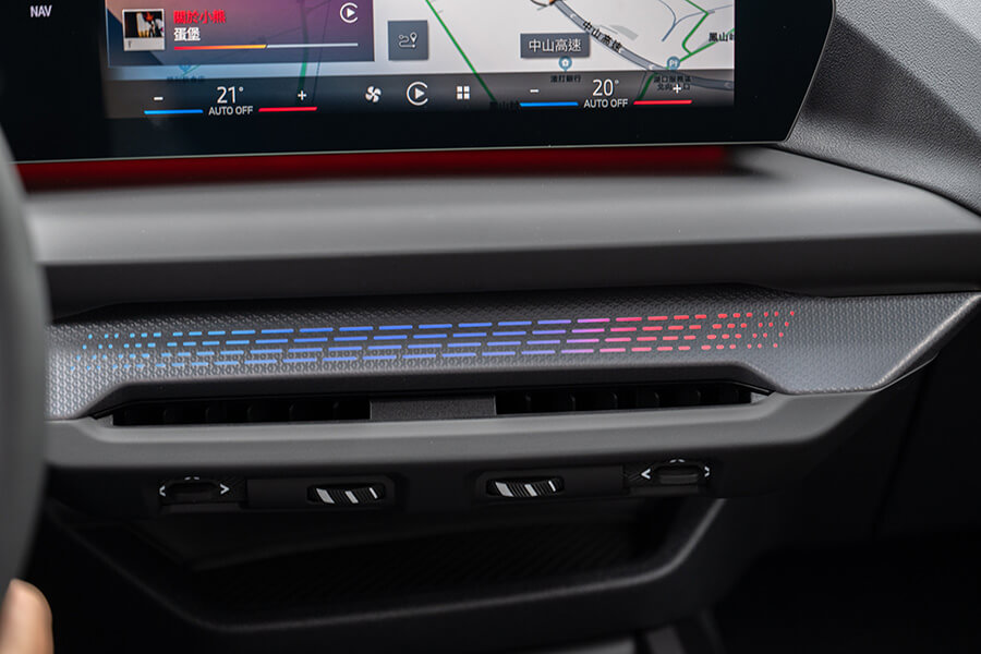 來到車廂一環,懸浮式曲面螢幕上有10.25吋虛擬儀錶及10.7吋資訊娛樂螢幕的組合,其中重點就在於採用OS9.0作業系統的資訊娛樂功能,觸控螢幕的反應速度明快許多,裏頭的多項APP應用程式及頁面雖然一開始會讓你花上好幾個小時去熟悉各項設定與功能,即便裏頭已經內建使用說明等小幫手,但你想找到自行決定是否開啟的聲音警示的駕駛輔助功能仍需耗掉許多時間。確實,這是現今大部分豪車都會面對的問題,或許要等到類似ChatGPT這類AI助理加入才能提高指令下達的準確度,不過至少就120 M Sport的車廂配置來看,摩登觀感與簡潔的實體按鈕設置,加上三條斜線融入M品牌配色的神來一筆,總算洗刷了過去人們對寶馬內裝設計師工作內容太過輕鬆的印象。