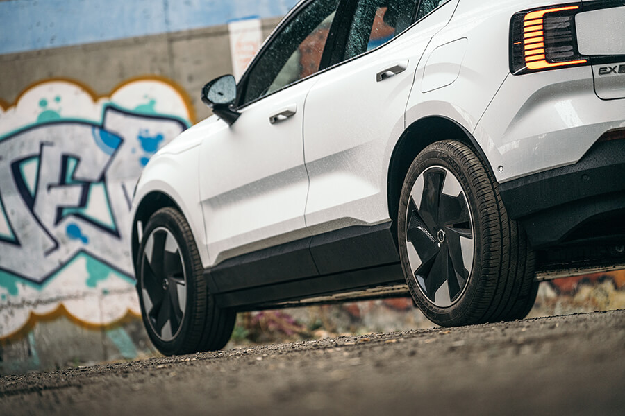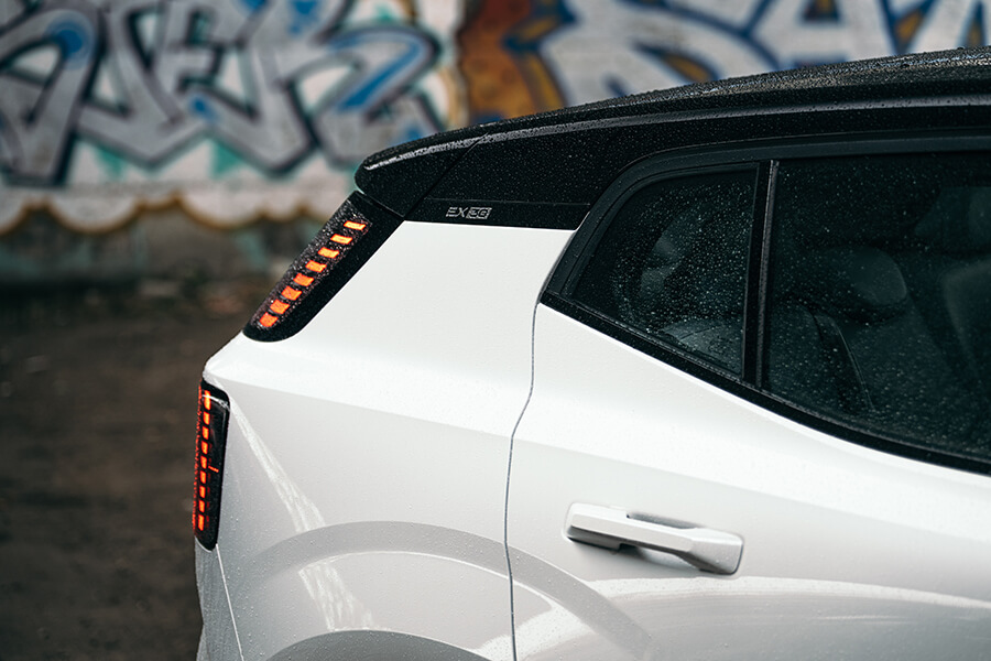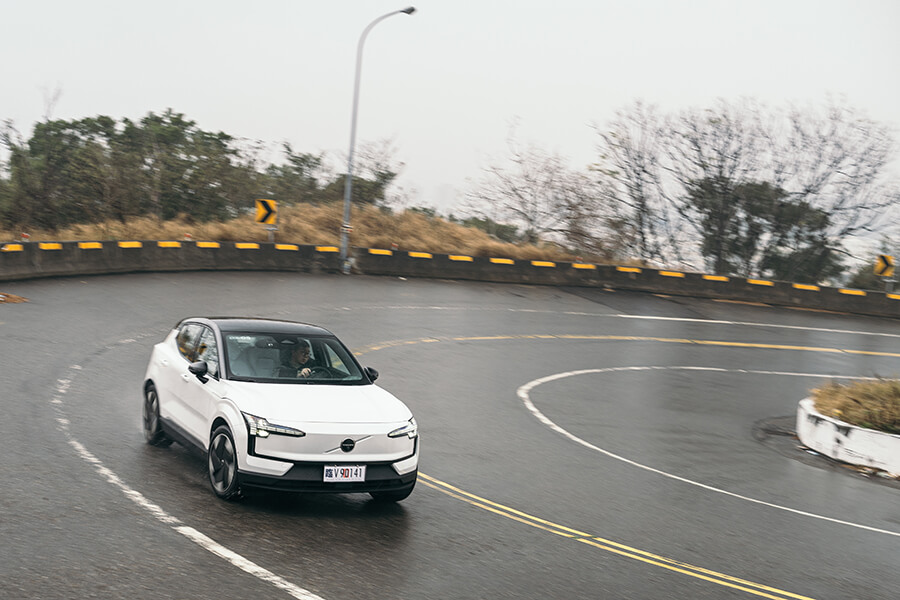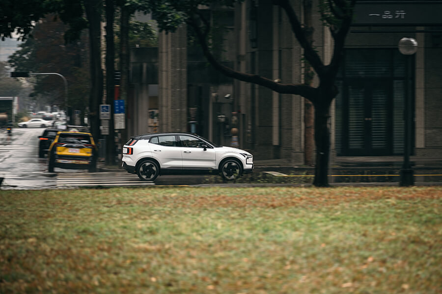 儘管身懷428hp的EX30帳面上有著零百加速3.6秒的能耐,遊走在市區時透過右腳釋放出來的力量倒相對含蓄,頗似小排量掀背車的動力鋪陳並不會讓人立刻覺得自己已實現動力自由而想踩就踩,我想這種駕駛情境的塑造與導引也間接是節省能源消耗的一種做法;然而若你真的遇上超車、閃避的需求,或是單純想讓靈魂體會一下在後方苦苦追趕肉身的滋味,一腳踹出時前後軸雙馬達齊發的推力簡直如離弦之箭,彈出當下彷彿感覺得到雙眼瞳孔都為之一縮。