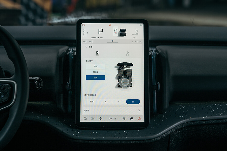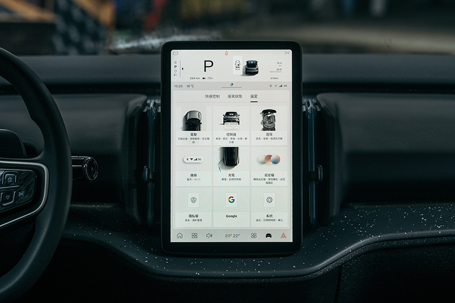 車內所有控制相關現已全部整合到中控這張12.3吋螢幕之中。八核心架構再加上Google加持的作業系統還具備5G高速連網功能,在上方約20%面積處直接充作汽車儀表,負責顯示檔位、車速、輔助駕駛及其他必要的警示燈號,下方的塊狀UI安排簡直與Carplay介面並無二致。不過兩者之間再像,依然是以車機系統進行導航時,才會提供目的地的電量預估功能。系統中的分類調整介面都設計得十分就手,不過可惜之處在於時而平行、時而以棋盤狀排列的選單在操作邏輯上還有進步的空間,有賴此車具備的OTA功能於後續逐步改善。