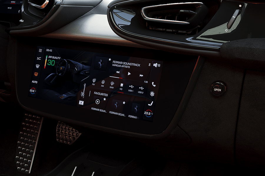 在這段公路上我們也感受到12Cilindri Spider在霸道之外的另一面,Sport模式溫馴、優雅的一面會讓你驚訝法拉利居然可以如此軟嫩、溫柔,相當怡人的車艙亦有別於過去的F1美學,雙座艙架構的正中央這次多了一組10.25吋螢幕後變的熱鬧了起來,不過15.6吋虛擬儀錶仍守住底線,引擎轉速錶盤踞C位,兩側分別為車輛資訊及行車輔助與娛樂功能,至於乘客座的8.8吋螢幕相信大家應該都熟,必須花一些時間適應的就只有方向盤,更多的功能與觸控按鈕中還加入一顆ADAS行車輔助功能啟動鈕,為避免操駕時誤觸而掃興,廠方特別針對此功能加入計時功能,超過15秒未操作就會進入休眠狀態,要重新觸碰按鈕才會喚醒,過於複雜嗎?對我而言在試駕期間並沒有因此而產生任何困擾,多用幾次應該是沒有太大問題的。