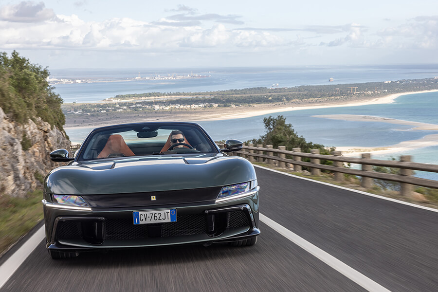 那麼操控表現又如何呢?相較於法拉利旗下產品如296 GTB/GTS或SF90 Stradale/Spider,或許人們很容易將12Cilindri歸類為一款GT,但這次法拉利顯然不打算讓人看輕承載品牌傳統的12Cilindri,從全新開發的鋁合金車架到縮短20mm的軸距,還有大量主動電控系統如火候上乘的磁流變避震器、側滑角控制SSC 8.0及虛擬短軸距PCV 3.0,有這些高明的最新科技傍身,讓我輩得以由淺入深逐步探索12Cilindri Spider的精髓。
