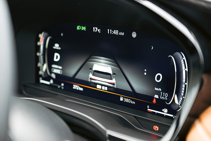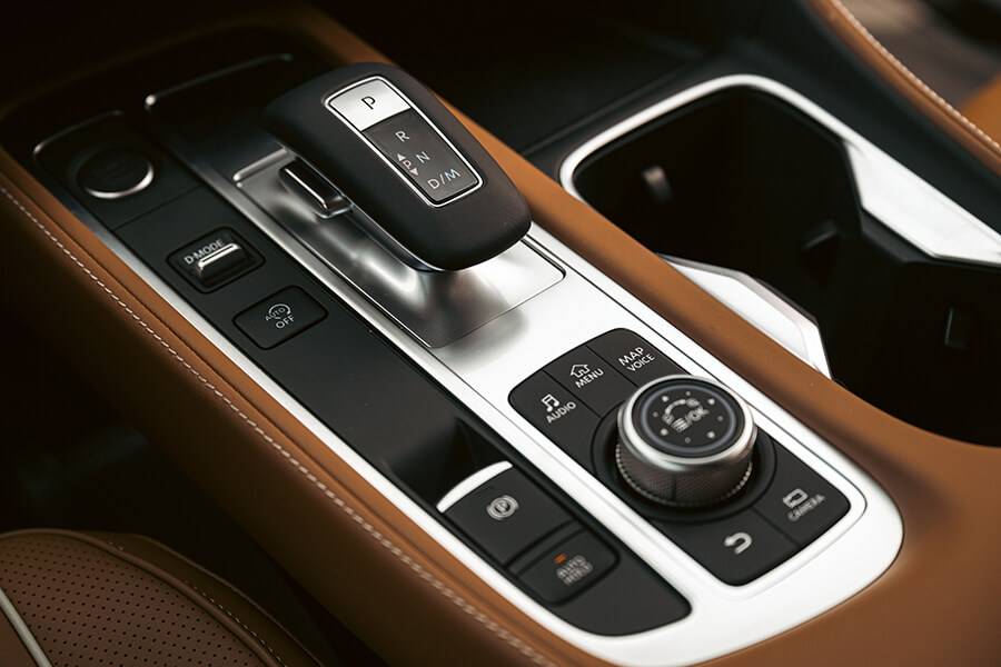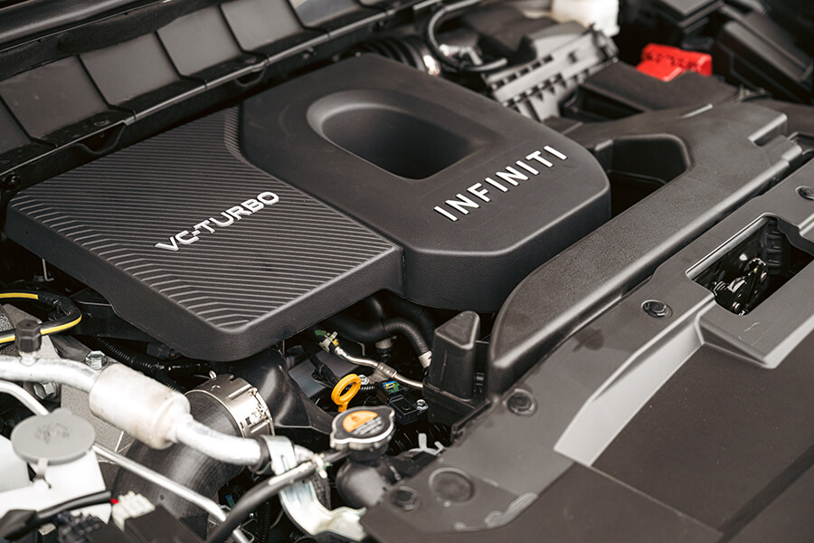 268匹馬力雖然略遜VQ引擎,39.6公斤米的峰值扭力卻呈現小贏態勢;且峰值轉速皆早過搭載VQ35的車型,除了少了V6自然進氣引擎平順的轉速攀升曲線外,這顆四缸引擎在出力上完全未見遜色,左彎右拐時易能感覺車頭顯得更加輕盈靈活。不客氣地一腳踩下油門踏板,瞬間提高的引擎負載下彷彿能感覺到控制曲軸位置的控制連桿做動改變壓縮比,促使更充沛的動力萌發。仍需要較長反射弧的過程雖仍無法取代V6的線性,不過要是轉換成較和襯於此車的柔順腳法,可變壓縮比與九速變速箱的搭配簡直將動力的調配轉化於無形,平順又靜悄悄的乘坐品質幾乎感受不到任何頓挫。當然你也可以自行選擇節能或運動模式來促使前方引擎站穩立場,不過我倒覺得標準模式便已平衡了動力需求與舒適度,若非特殊情形,好像並沒有任何切換模式的理由……。