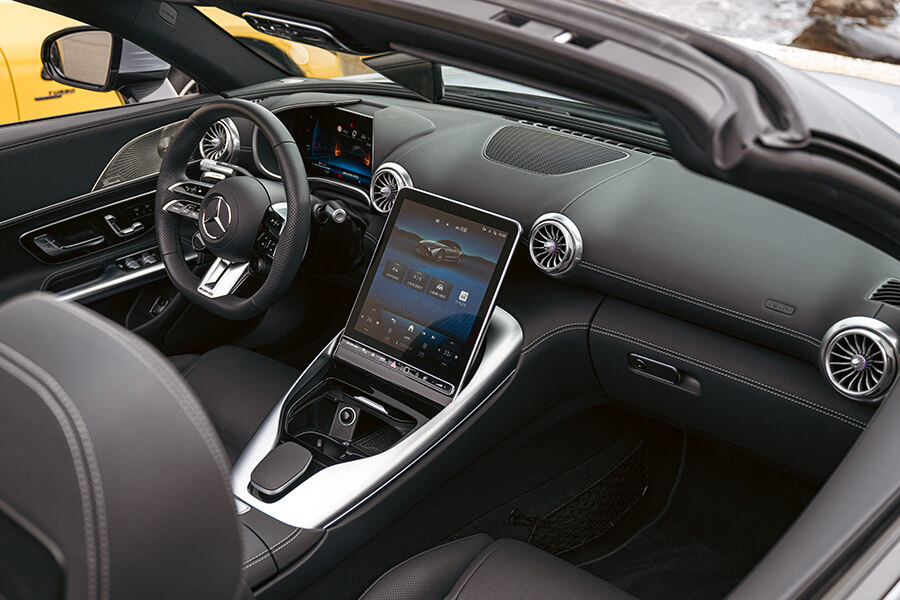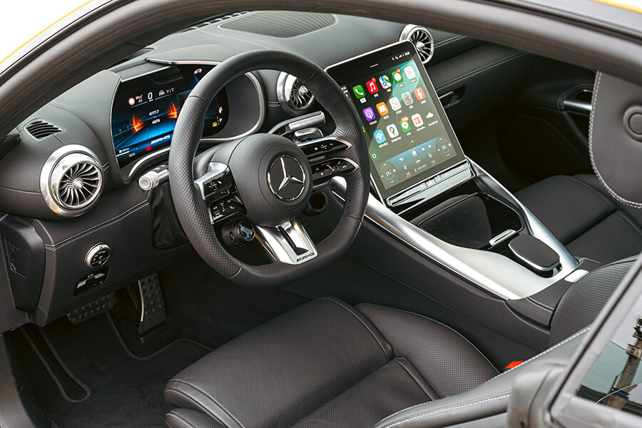 至於這場看似悠哉出遊但其實明爭暗鬥的戲碼中,內裝是兩部車最無爭議的部分,完全複製貼上的中控台與控制介面,從高檔皮革包覆的低重心跑車座椅,以及注重小細節的精緻度,高級感不言而喻,真是善哉善哉。至於看起來稍顯突兀的長方形11.9吋直立式MBUX觸控螢幕雖有體積過大之嫌,真的啟用衛星導航或操作手機連線時仍算是理想安排,而且排檔桿被移至方向機柱右側,讓鞍座中央的置物空間與杯架使用更就手。那麼開起來哪一方較可取呢?是時候來一場同門對壘了。