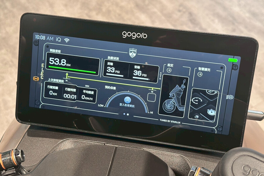 除了好看的外表皮相之外,大家都知道Pulse的拿手好戲在於手把前那片10.25 吋的全彩觸控螢幕。喚醒車輛時,iQ Touch HD 加乘特仕款專屬航空儀表主題就已呈現晨昏時刻的迷人霞光,整合實時騎乘數據、地圖導航與即時路況、GoStation 電池交換站地圖,多種模式配合裝置於車輛龍頭的「騎乘模式旋鈕」,騎士可依據自身偏好在「續航 / 泥地 / 都會 / 長途 / 賽道 / 自訂」等六類場景、與「彈射起步模式」中快速切換。全景高解析觸控螢幕搭載高通新一代 Qualcomm Snapdragon QWM2290 晶片,展現豐富的數位功能與出色的人機互動介面,並可透過熱點實現即時連網。且僅有這款特仕車才搭載有專屬航空儀表主題,取材於飛機駕駛艙的儀表設計,將飛行元素與數位儀表融合,提供極具航空感的騎乘介面;在音效上也精心調校,模擬飛機啟動、起飛等多種環境音,讓車主透過視覺與聽覺,享受宛如置身飛行機艙內的駕馭體驗。