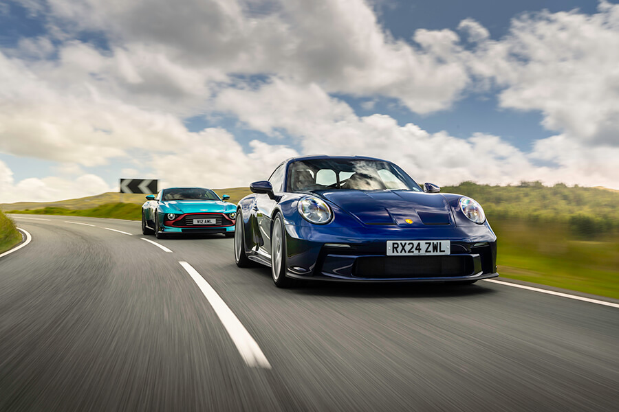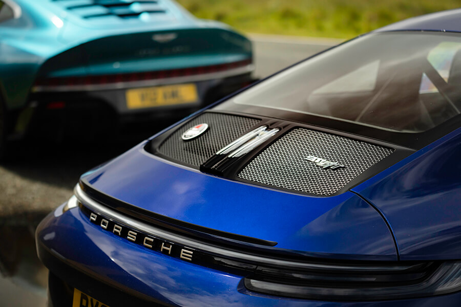 這兩部車令我尤其陶醉的地方,在於這個世界假若沒有SUV當道,不受邊際利潤、股東利益、市場佔有率和共用平台的掣肘,Aston Martin和保時捷的出品將無一例外是這類動人貨色。英國一方有穿著名師設計西裝招搖過市索價百萬鎊的肌肉車,德國那邊則有掛上車牌工程上乘火力足以盡掩體重的後置引擎賽車,兩家每次換檔都有本事令人熱血沸騰。