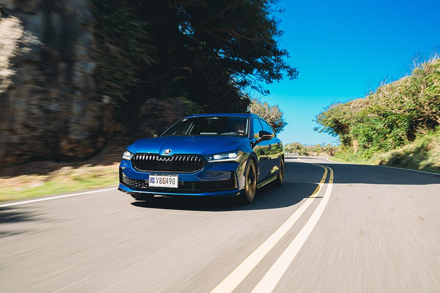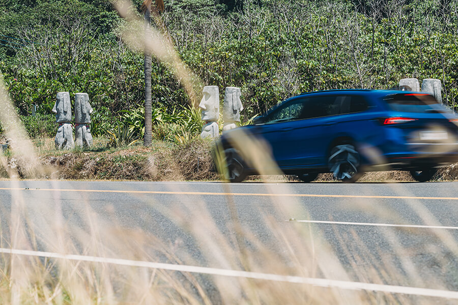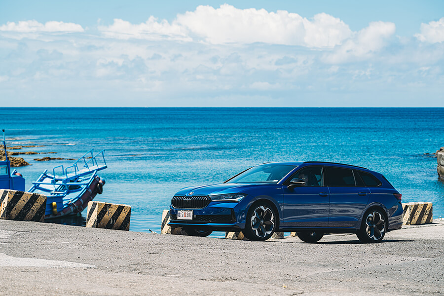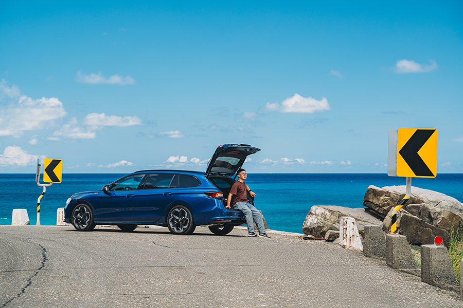 儘管經過拓寬,全程大多不分向的200縣道依舊又彎又急,即便此車底盤調性依舊十足沉穩,舒適模式下的阻尼在彎道中也漸漸產生晃動。轉動中央的Smart Dial切換到Normal模式,強上一階的阻尼設定馬上就反應在體感上,回彈勁道一次到位、劈入彎心的勢頭也顯得更加俐落。在這股頭過身就過的明快步伐下,旭海著名的彎道、黑松、漂流木與無垠的藍很快就填滿Superb Combi的玻璃車頂與所有車窗。究竟這兒的景色有多棒?看一旁的哈雷騎士寧願頂著曬到通紅的皮膚,也要拿出咖啡靜靜坐在一旁聽著海風野餐就會懂。