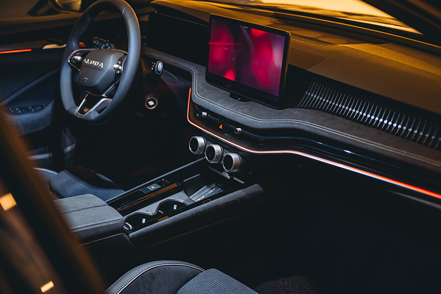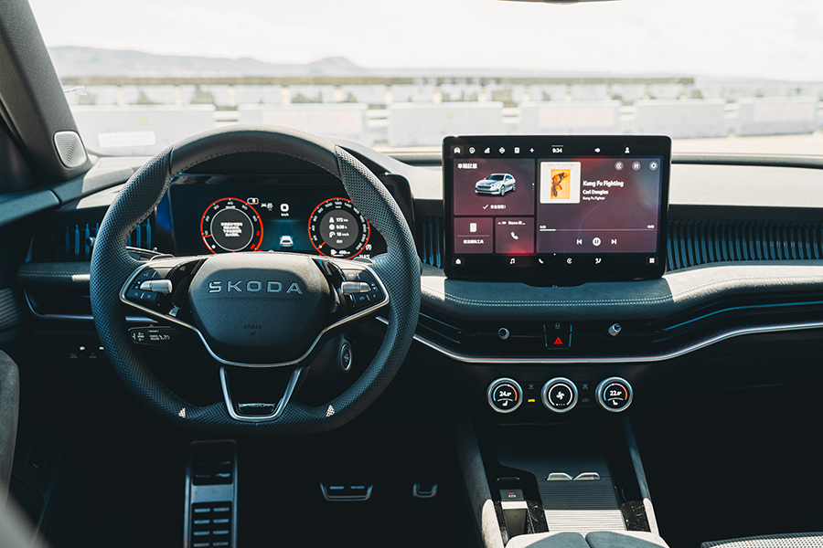 以為我就是這樣在路邊絞盡腦汁、一面把自己當飛魚乾在曬?不,這輛大型旅行車本就帶有廣闊肚量,這回更再度將車身拉長40mm,往後排一坐,膝前仍有許多餘裕外,前後座的頭部空間亦雙雙增加7mm。中央扶手一放,兩個杯架前還帶有一處支架供我放置手機、平板;再自頭枕旁拉出顯然能有效預防落枕情事的舒眠頭枕,將外套往B柱上的掛勾一掛、伸手拉起遮陽簾……中央扶手上那一包是甚麼?原來裝著一張柔軟毛毯,所有後座服務各就各位後,早已在心中想定的試車路線差點直接改以做夢方式前往。打開後廂門,比起前代整整多了30L的行李箱容量裡頭還藏著許多玄機:標準狀態下就已達690L的行李空間內包含照明燈、置物掛勾、可拆隔板,兩旁的畸零空間內一邊是行李固定架的收納空間、另一側還有束帶設計,可放置較脆弱或擔心傾倒的物品。視線抬到上方,行李廂遮簾下還有一個鋁合金支架固定的行李吊床,避免大件行李與易碎物相互碰撞的手段相當多元,依然不脫Skoda一貫的務實個性。