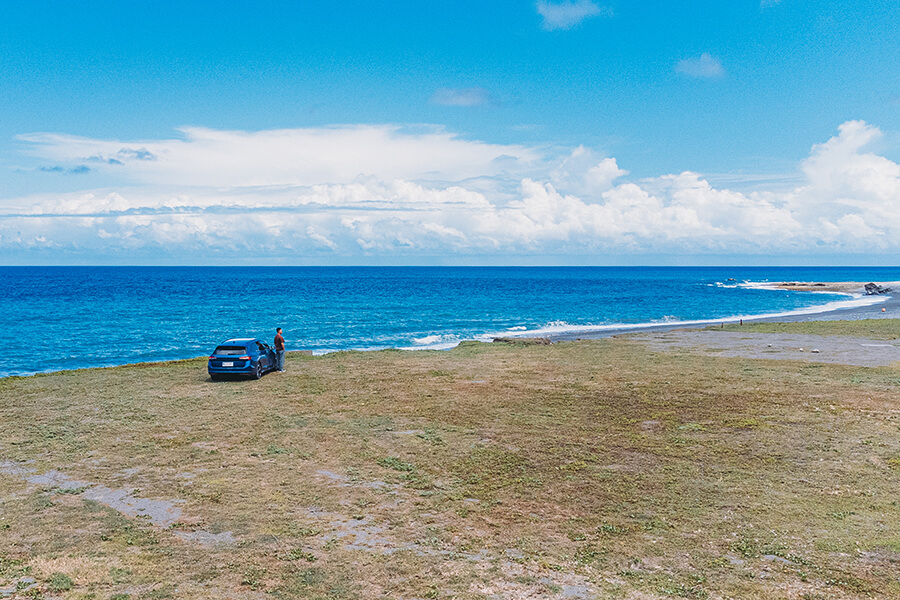 離開非鋪裝路面,繞過恆春丘陵、來到台灣造山運動的右半場。儘管天氣晴朗炎熱,景色開闊的龍磐公園的風勢依然不小,以上發現是我中途下車時才得出的結論,因為在四片雙層隔音玻璃與全車完整靜音工程的阻隔下,風切聲甚麼的真是沒聽到、只聞德國Canton最大可達725W的音響,透過無線CarPlay與13+1只揚聲器大力放送著匹配這片景色的Disco Funk樂聲。悠哉駛過港口吊橋、到恬靜的滿州蘋婆樹下吞了一杯紅龍果汁,接下來去三十公里山路外的旭海怎樣?走啊……